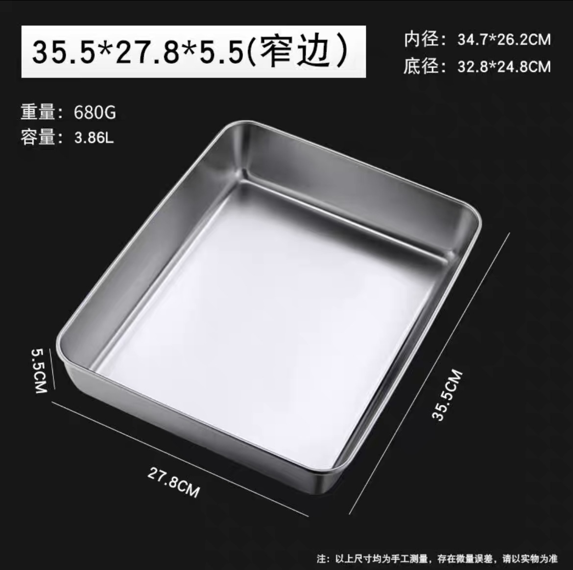 stainless steel plate 35 length × 27 width × 5.5 height
