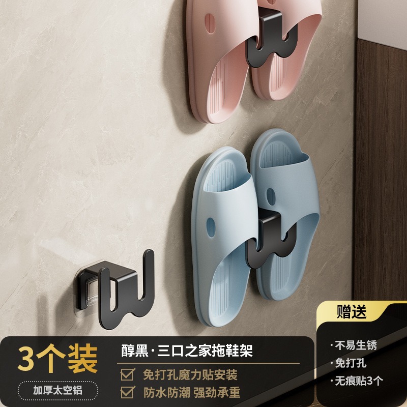 3 black three-person slipper rack (punch-free patch)