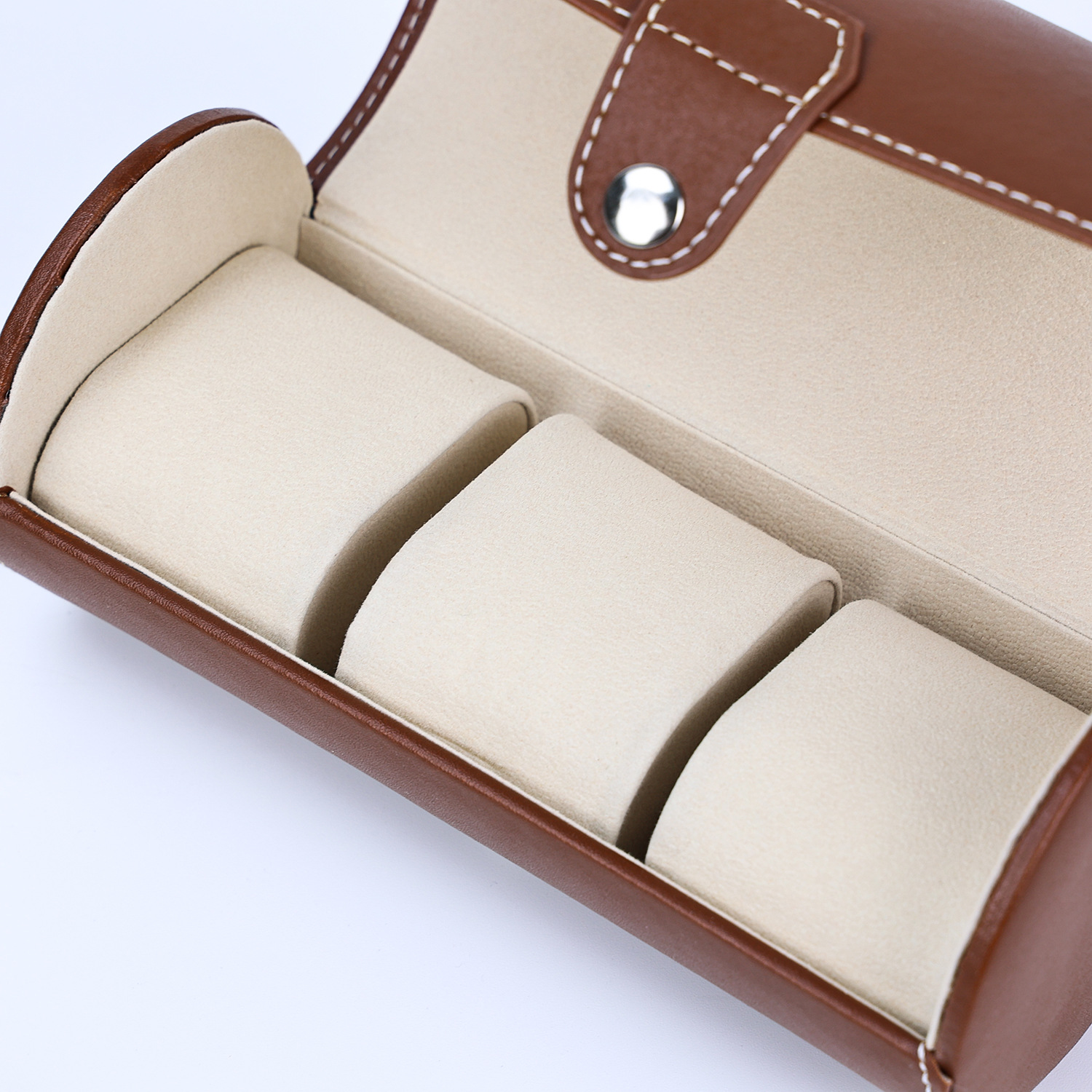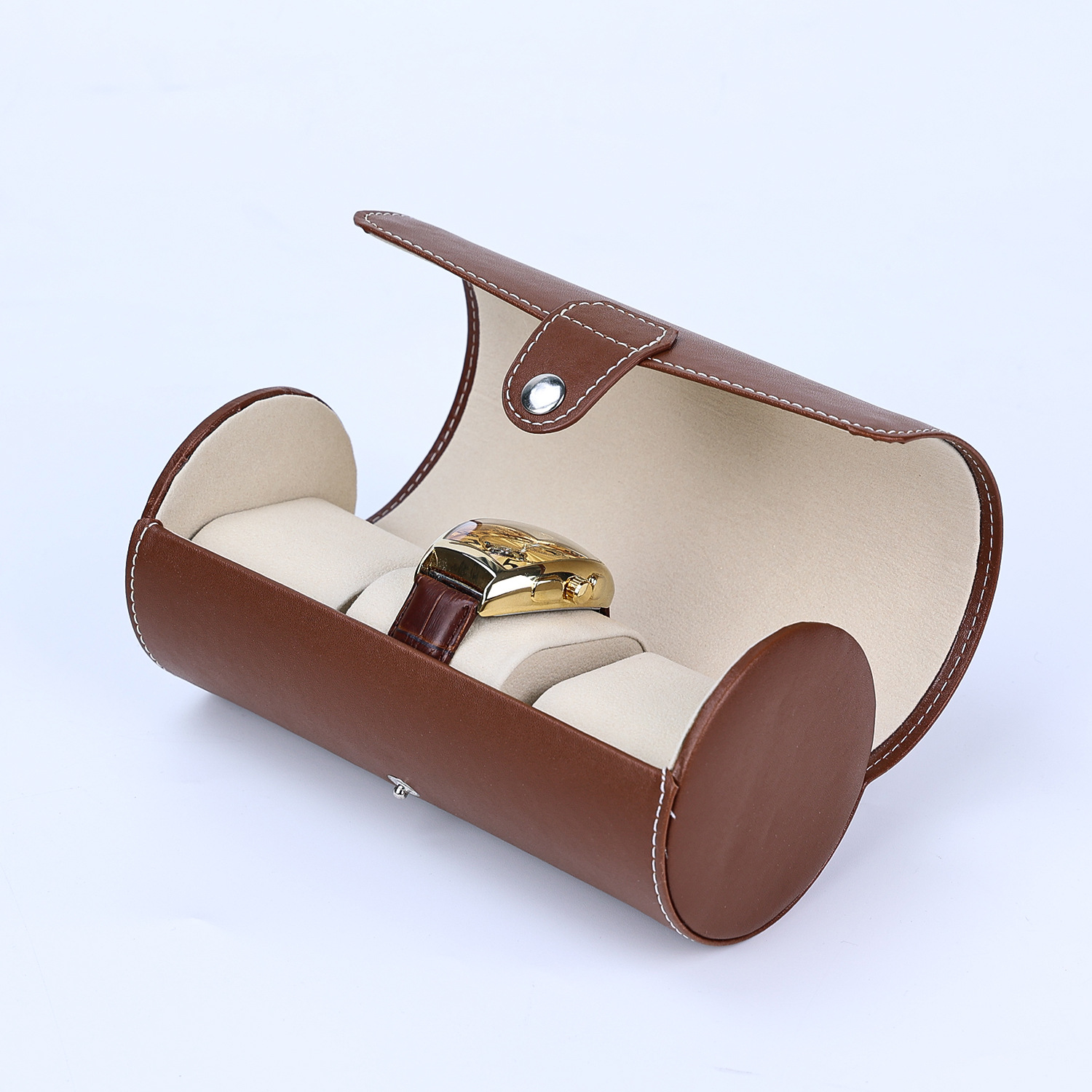 brown cylinder three watches bit watch box
