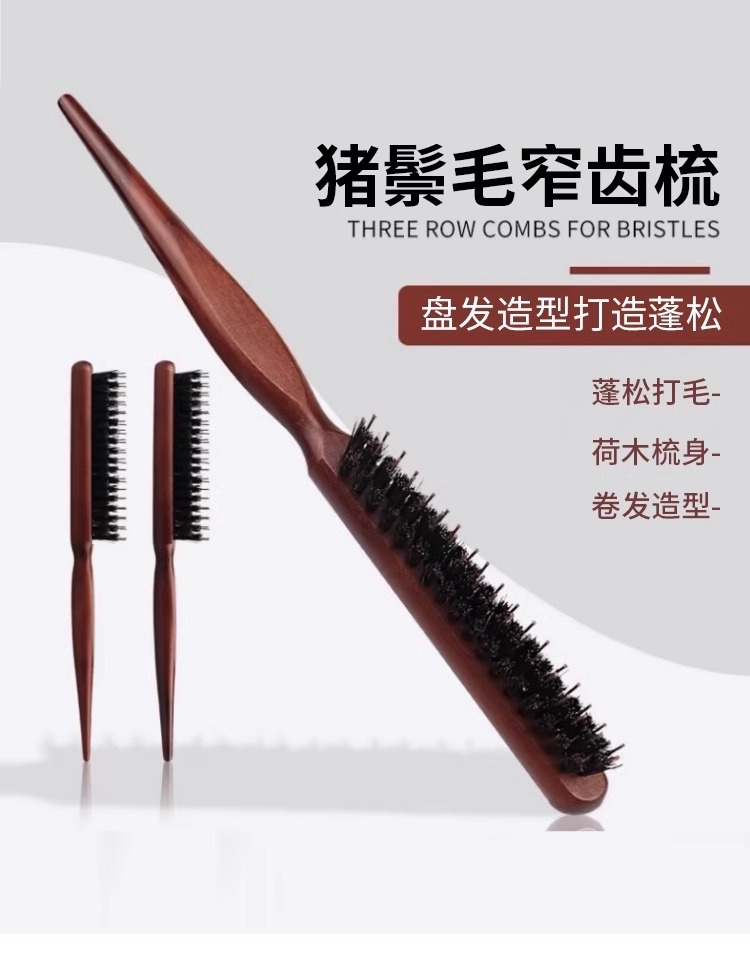 three-row teeth pointed tail narrow teeth bristle comb [1 handle]]