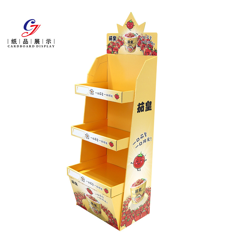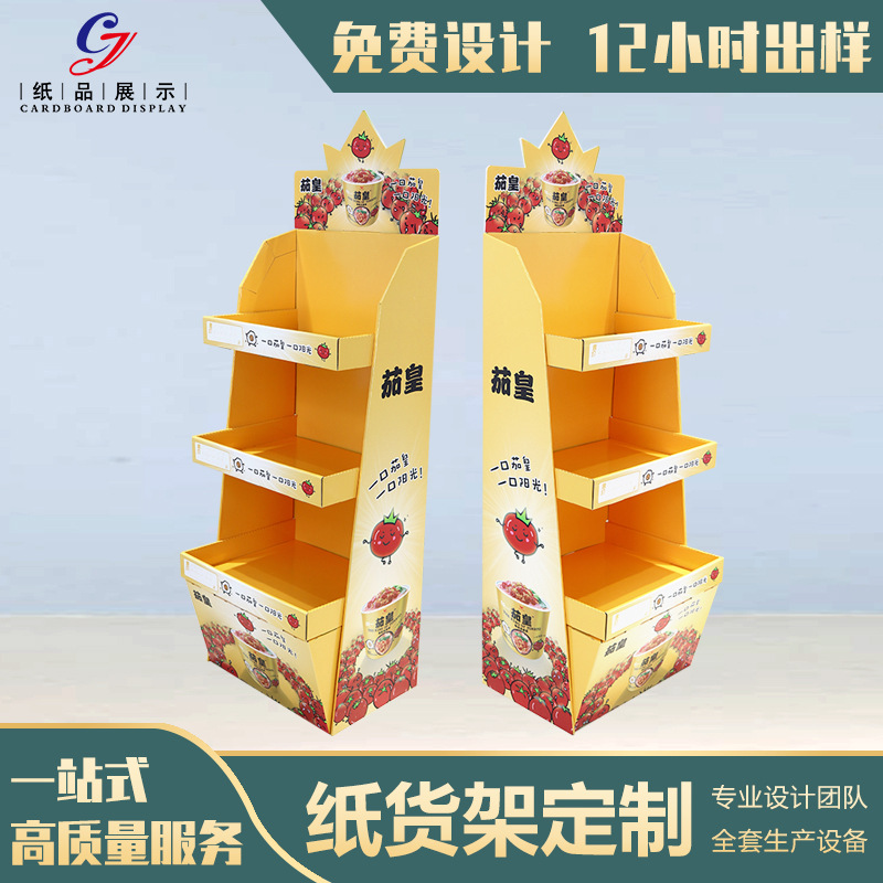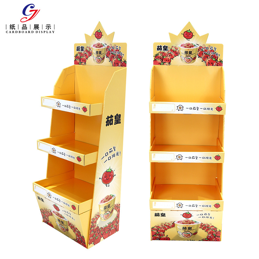 Customized supermarket paper shelf instant noodles toy display rack corrugated paper display rack food snacks cardboard display rack