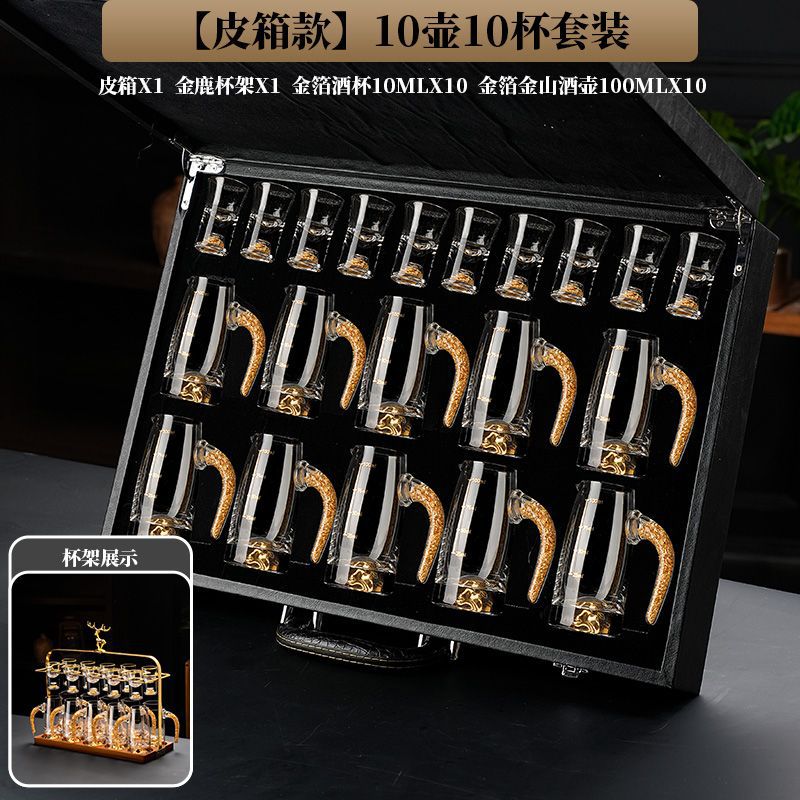gold foil jinshan liquor divider * 10 + white wine glass * 10 + deer head cup holder + leather case