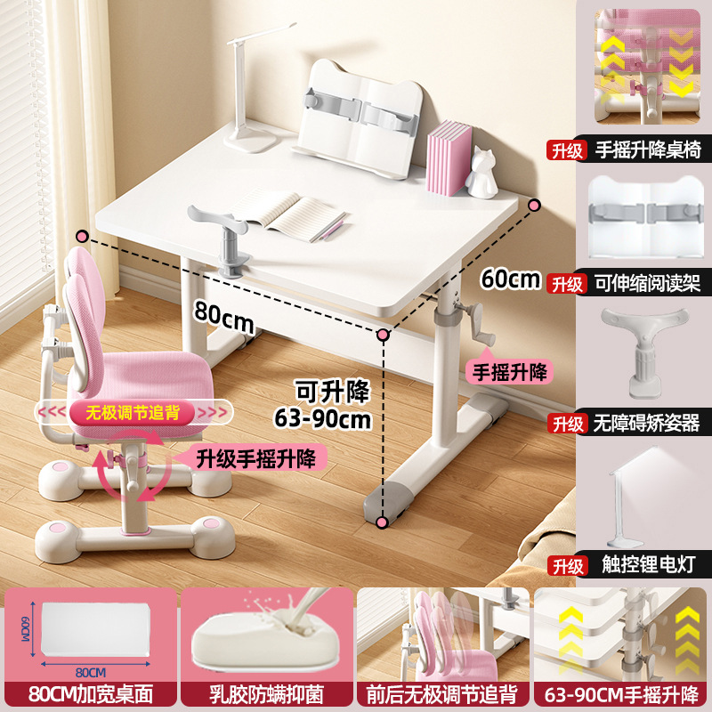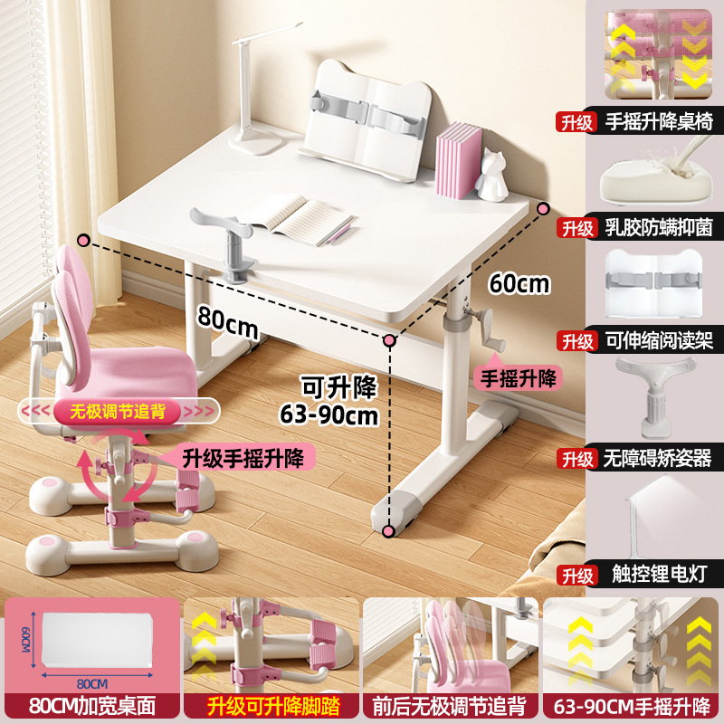 80*60 height adjustable table + lifting pedal study chair pink