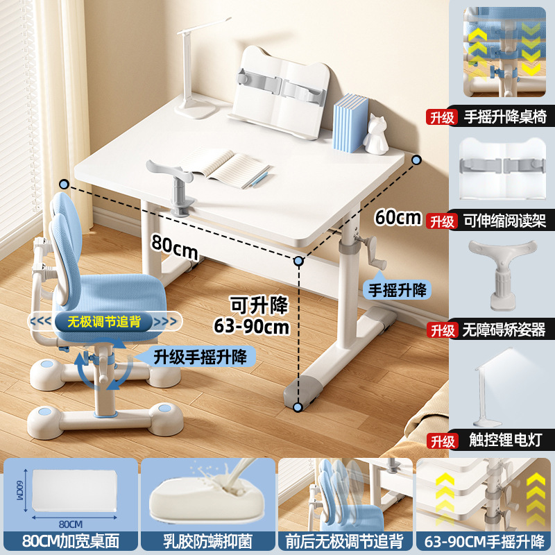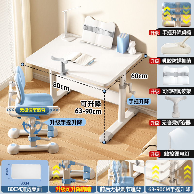 80*60 height adjustable table + lifting pedal study chair blue