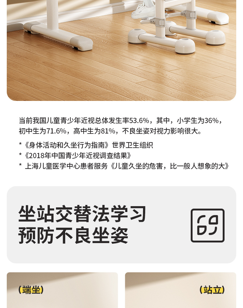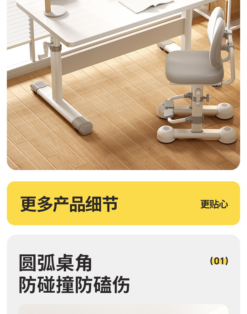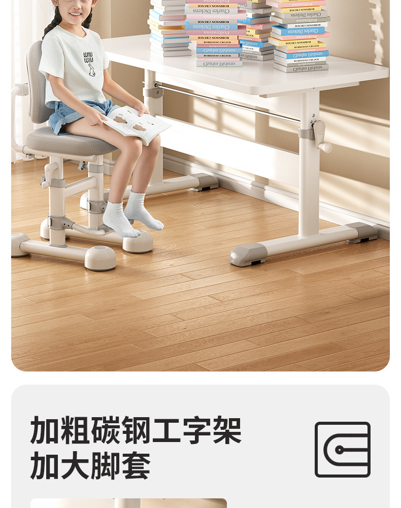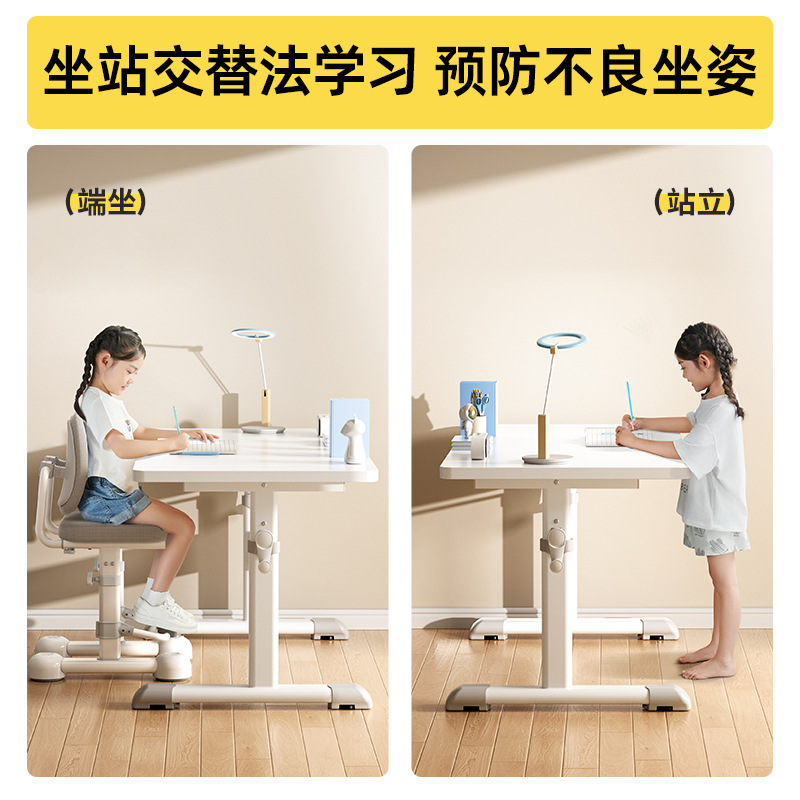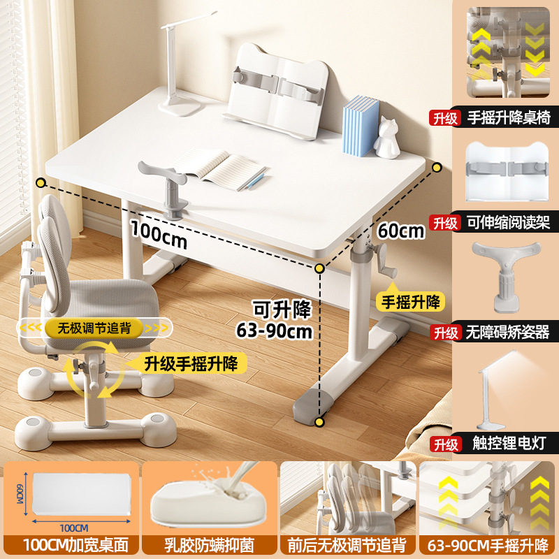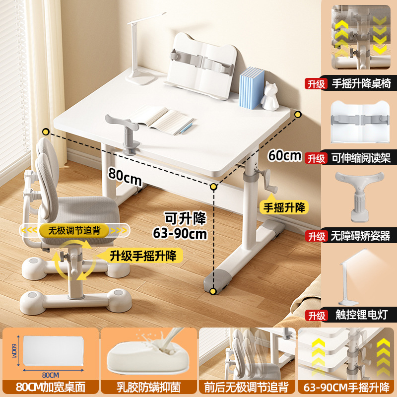 80*60 height adjustable table + lifting pedal study chair gray