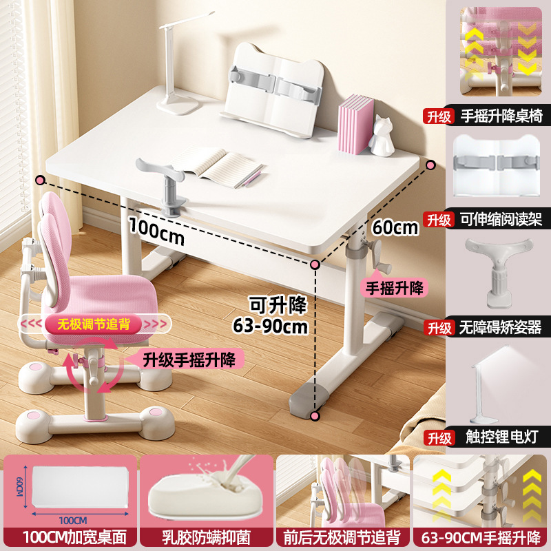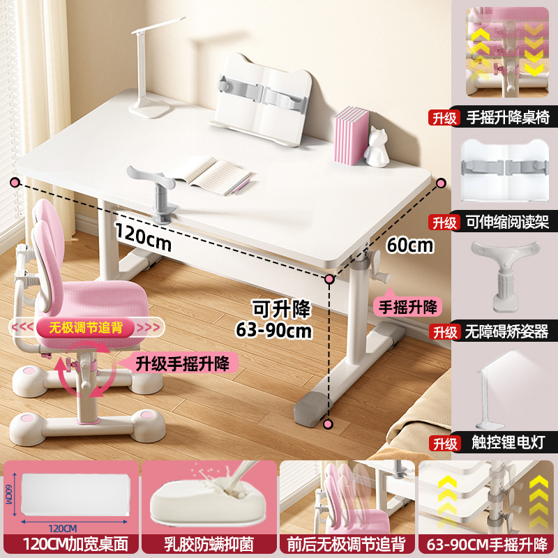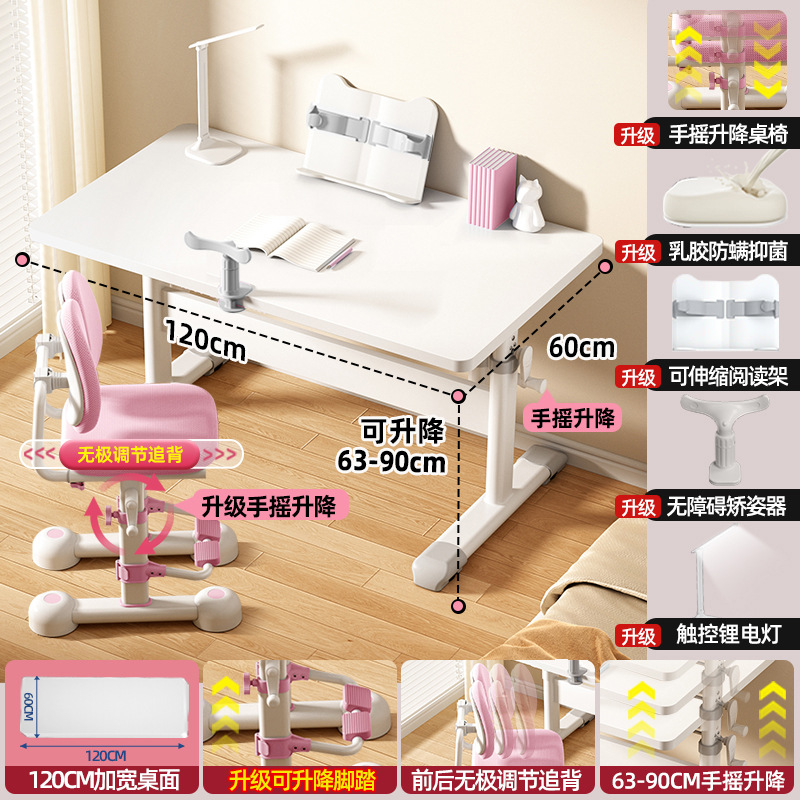 120*60 height adjustable table + lifting pedal study chair pink