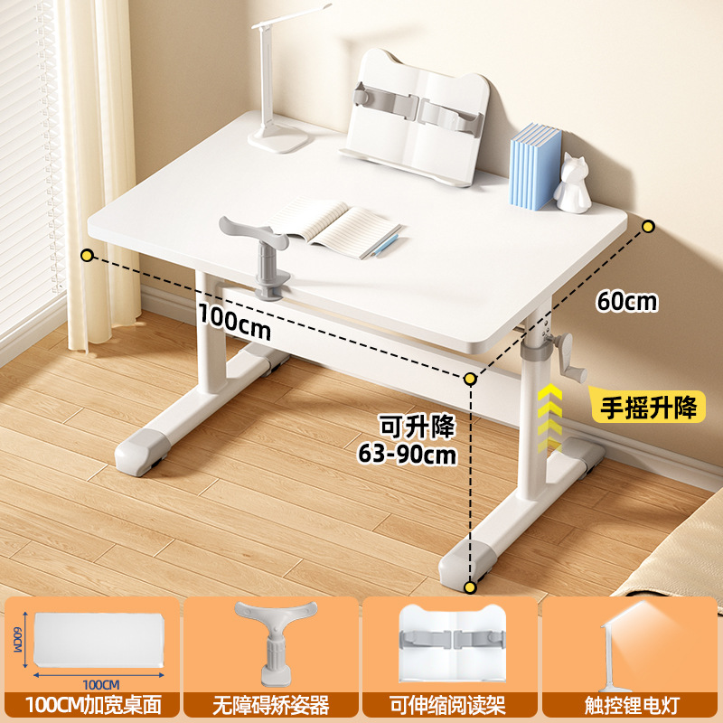 [1 m single table + posture corrector + reading rack + lithium battery lamp] white table