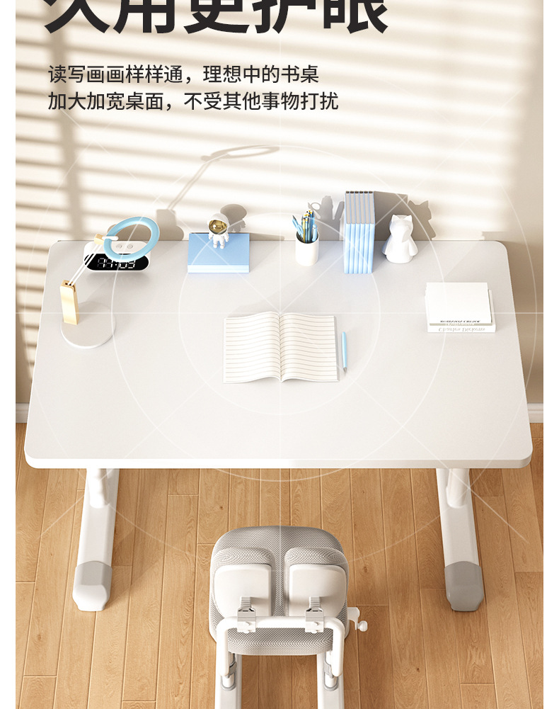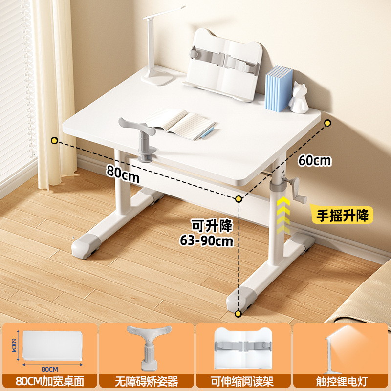 [0.8 m single table + posture corrector + reading rack + lithium battery lamp] white table