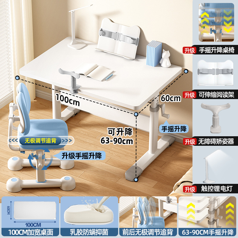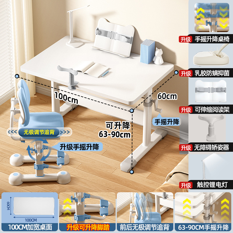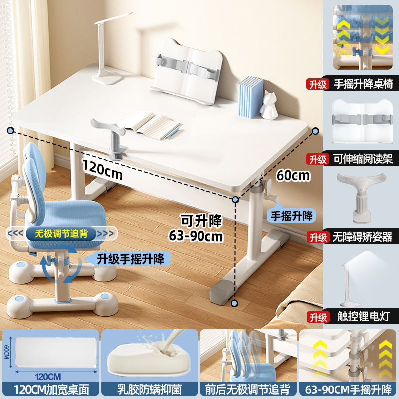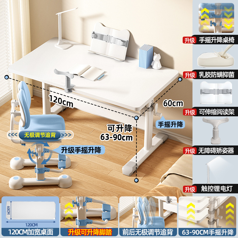 120*60 height adjustable table + lifting pedal study chair blue