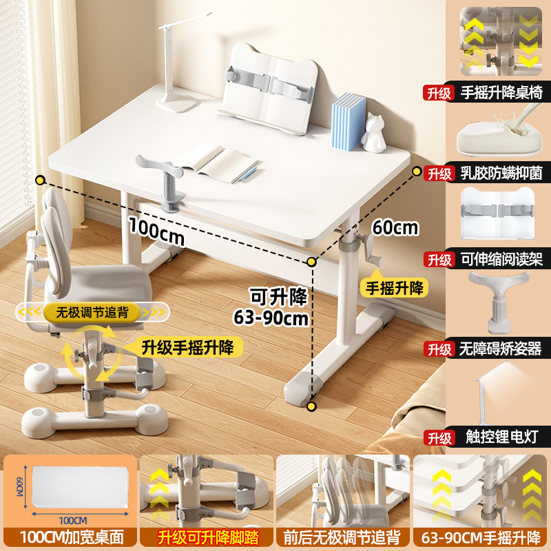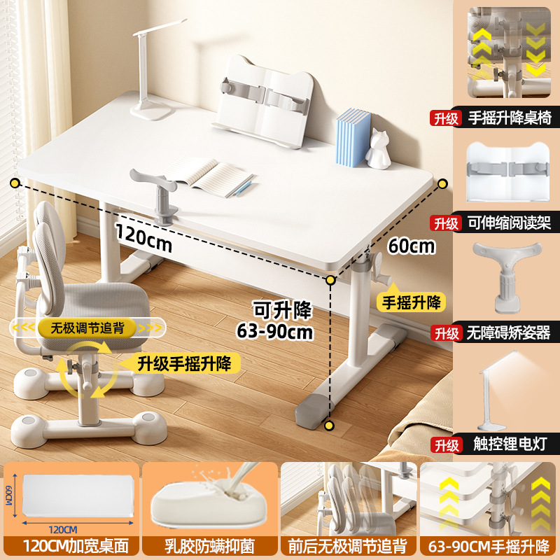 120*60 height adjustable table + lifting pedal study chair gray