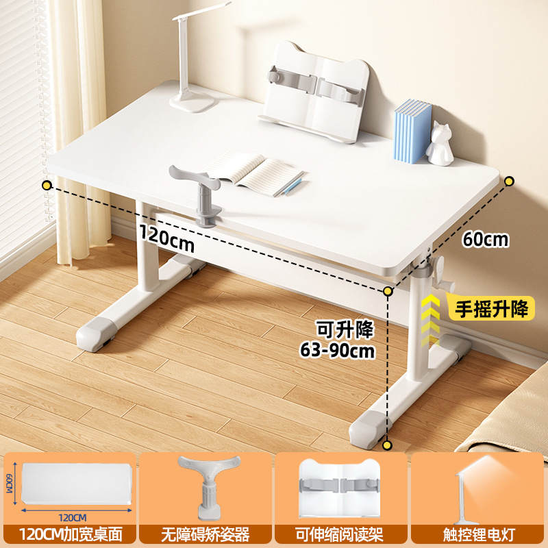 [1.2 m single table + posture corrector + reading rack + lithium battery lamp] white table