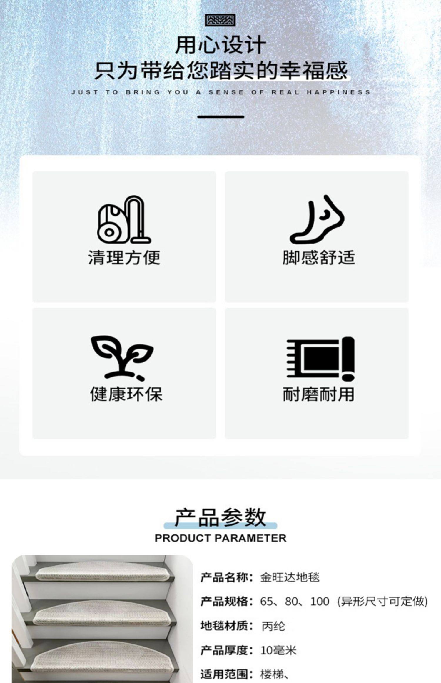 kingwanda villa light luxury stair carpet step mat glue-free self-adhesive non-slip mat home rotating custom stair mat