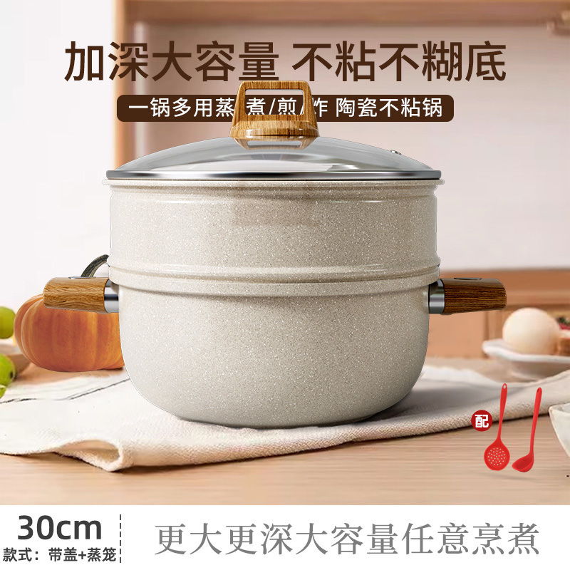 [30cm] soup pot + lid + steamer + silicone spoon 2-piece set