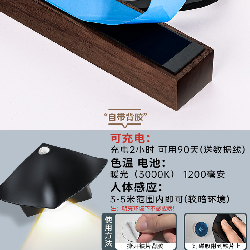 black words + walnut (with light);15x6cm
