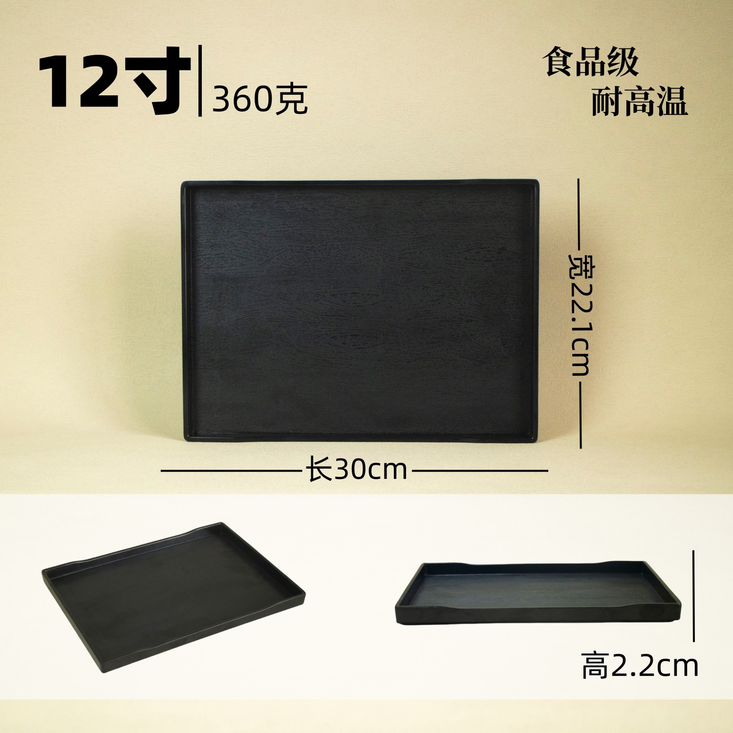 12-inch black wood grain tray-high temperature resistance