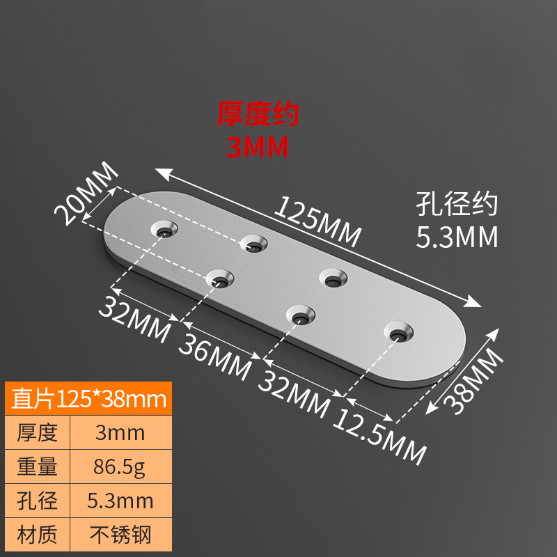 steel straight piece 125*38/6 holes