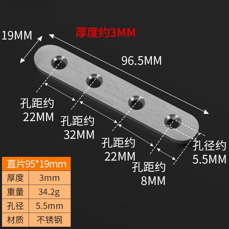 steel straight piece 95*38/6 holes
