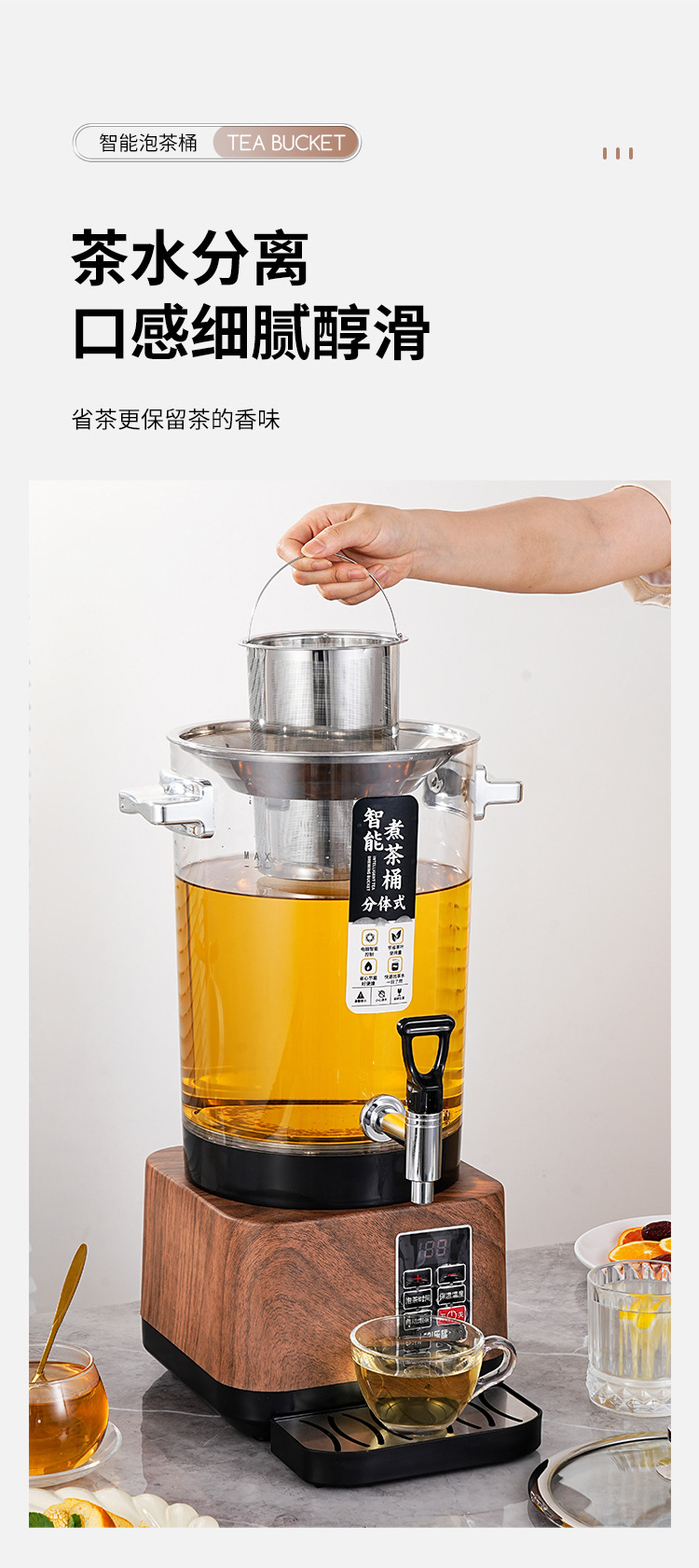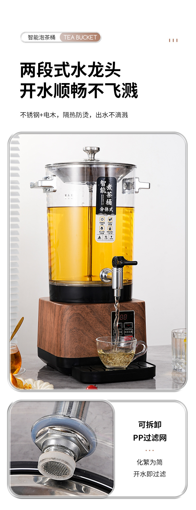 20l split wood grain-with tea strainer