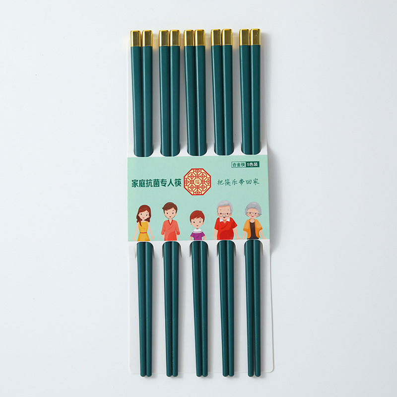 fang dingfu dark green alloy chopsticks 5 pairs one card