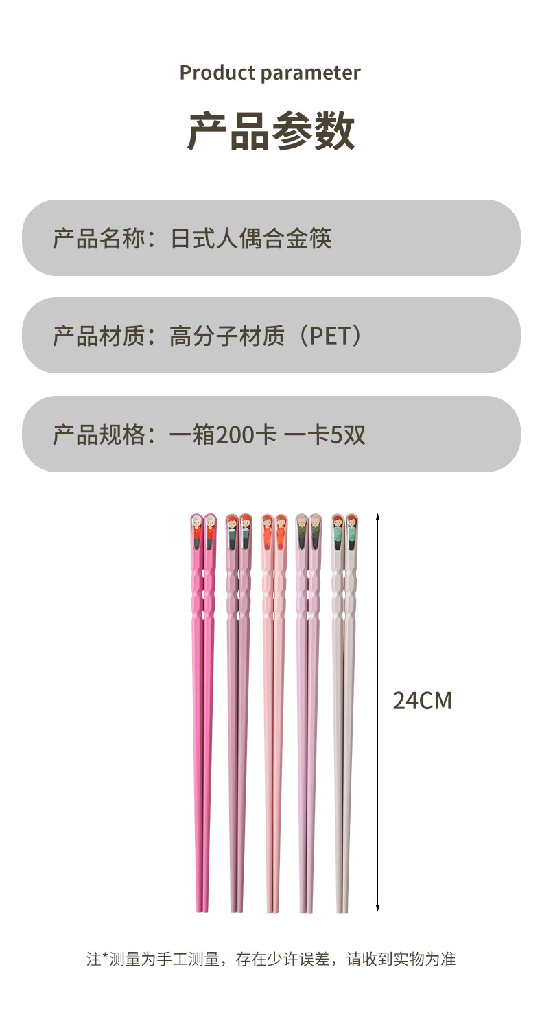 24cm macaron color diamond cut chopsticks 5 pairs one card