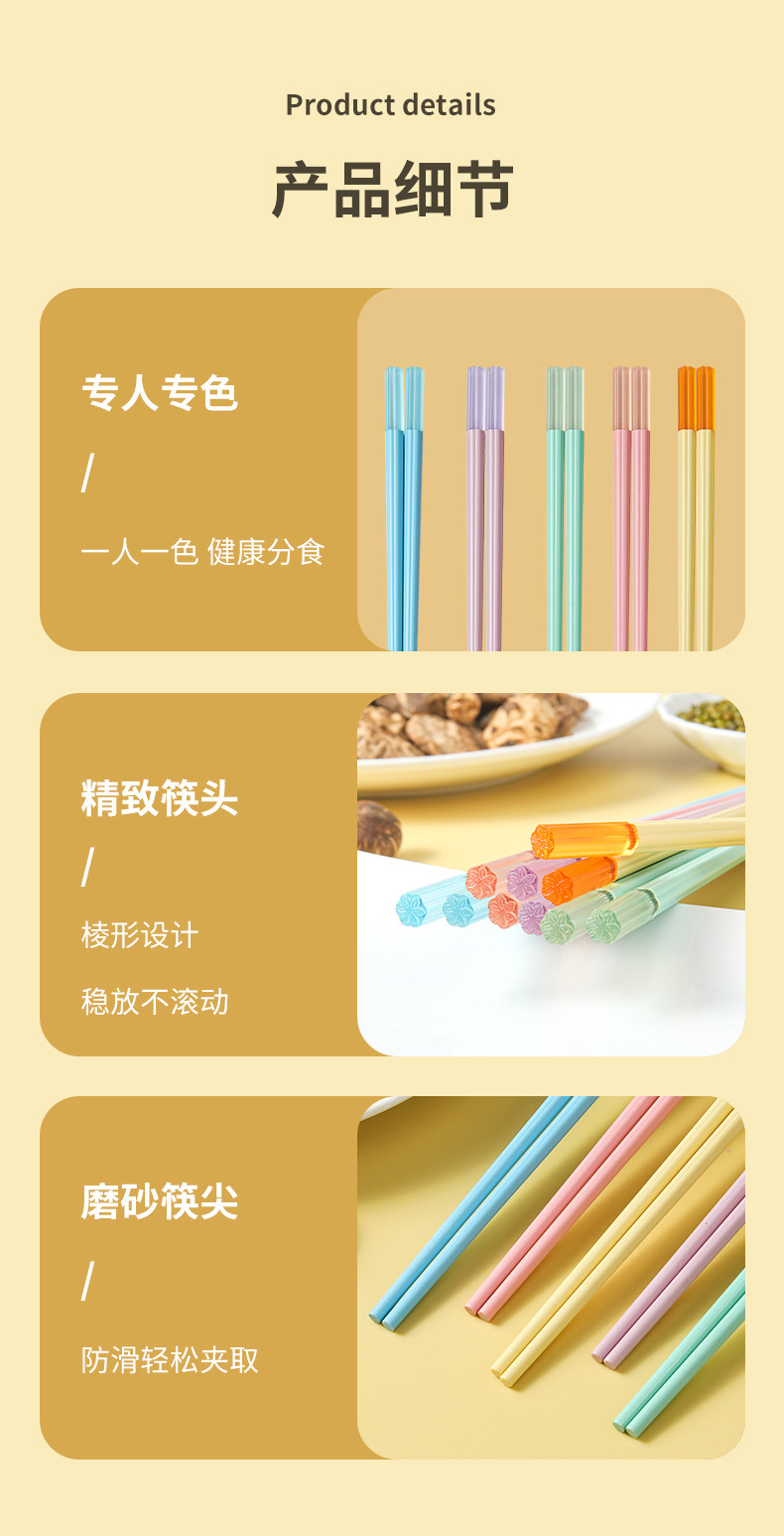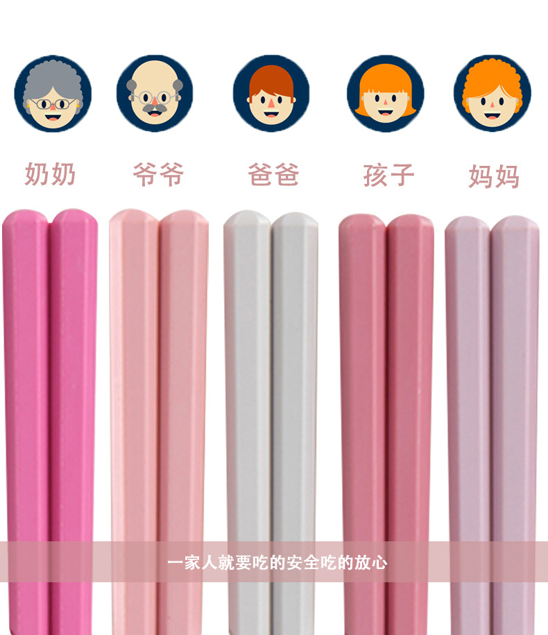 color hexagonal chopsticks 5 pairs one card