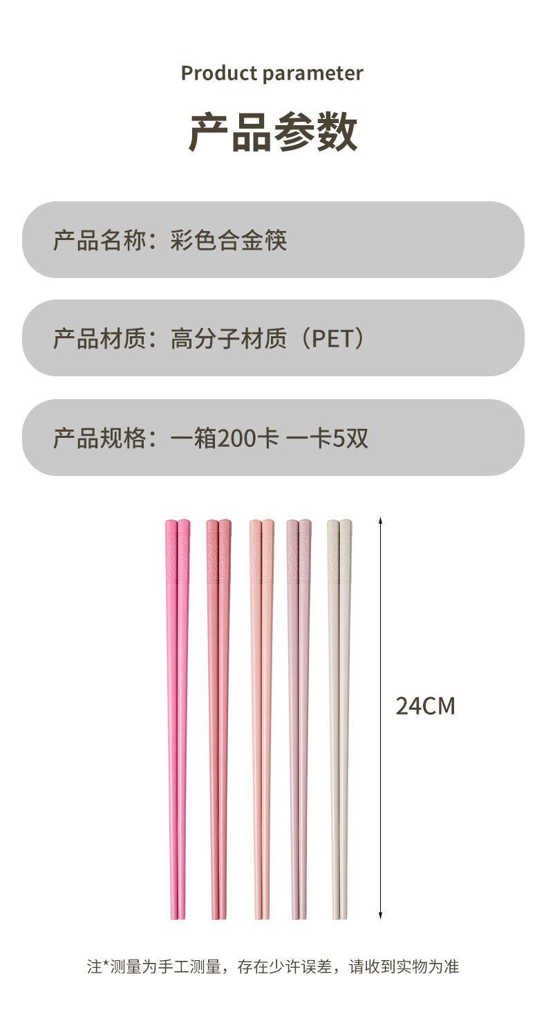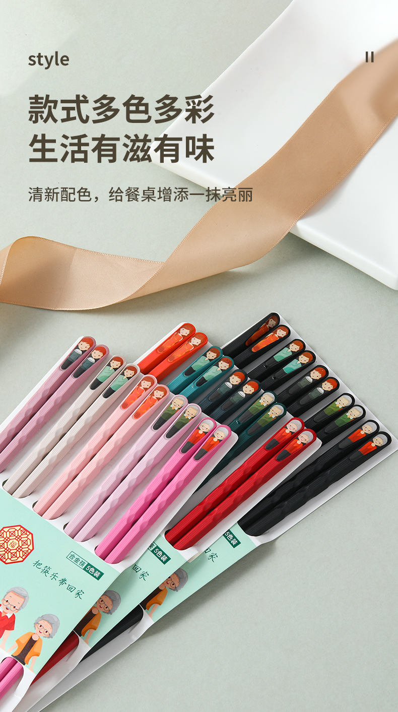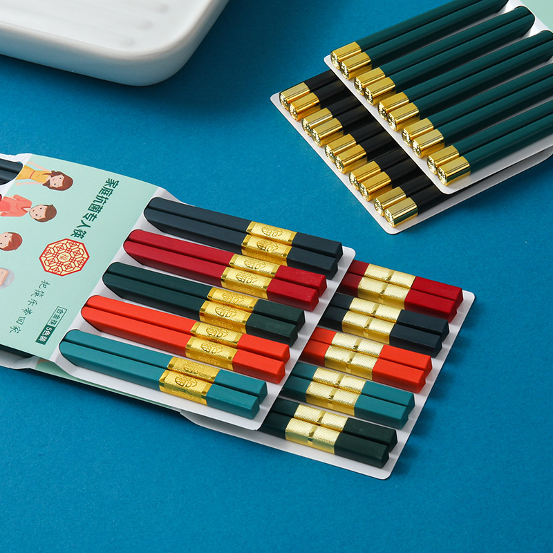 new festival high color alloy chopsticks 5 pairs one card