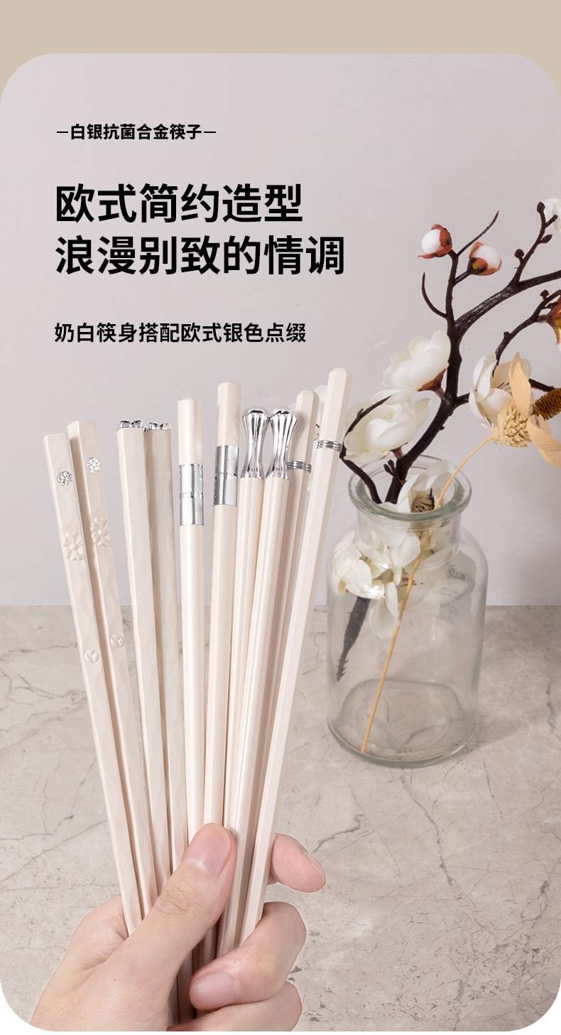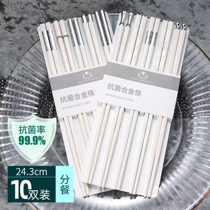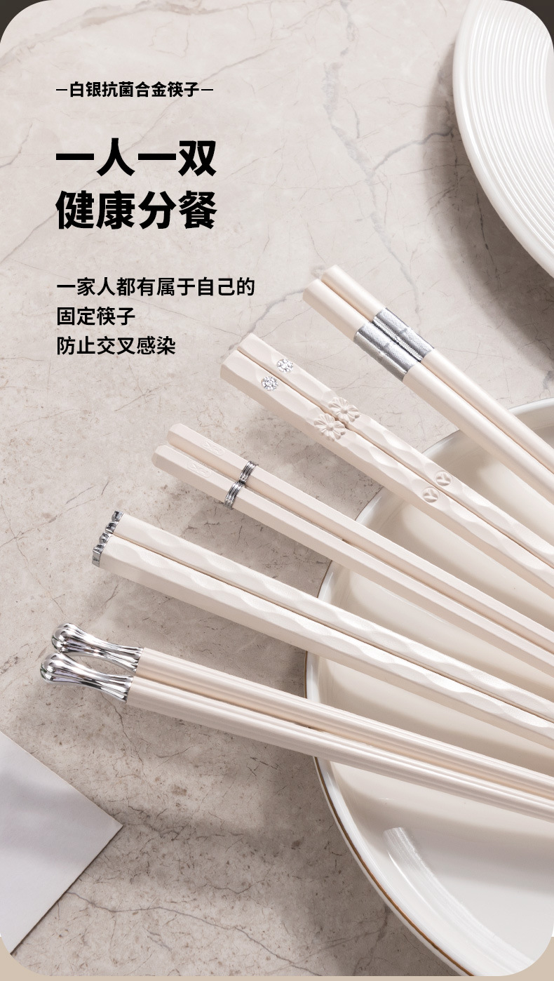 silver points chopsticks [10 pairs] antibacterial and mildewproof non-slip