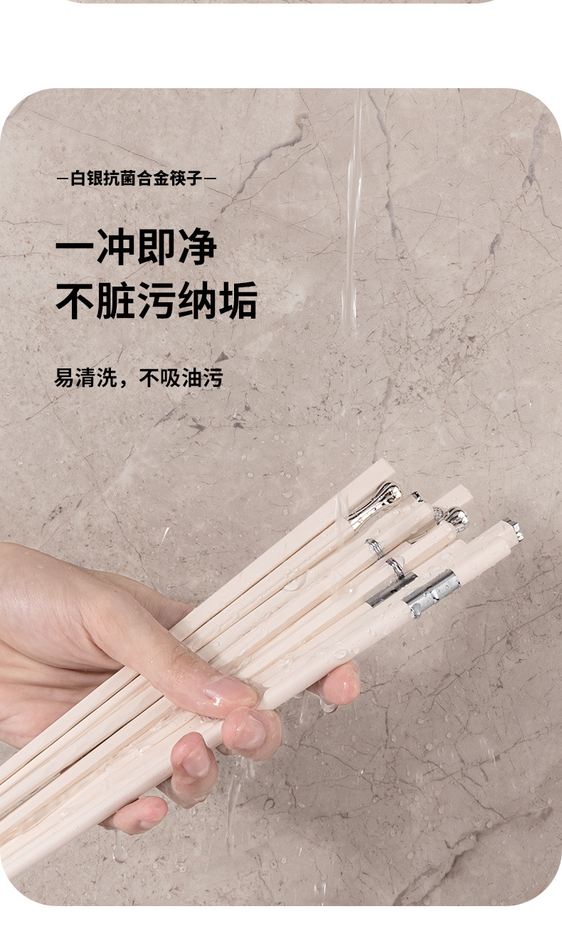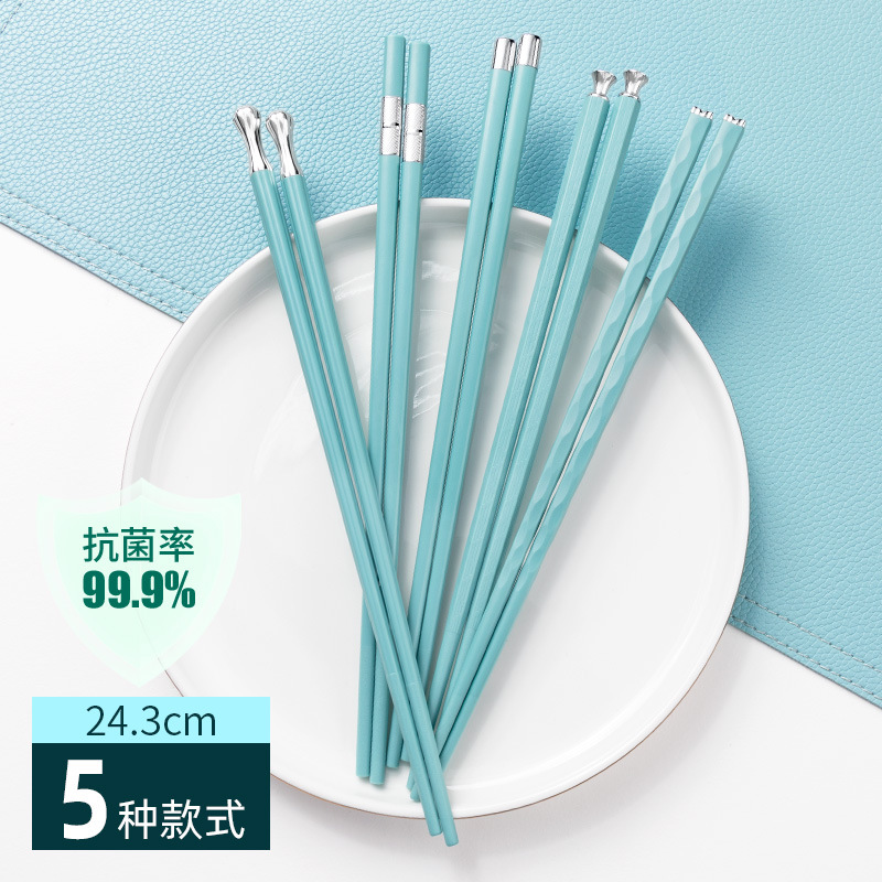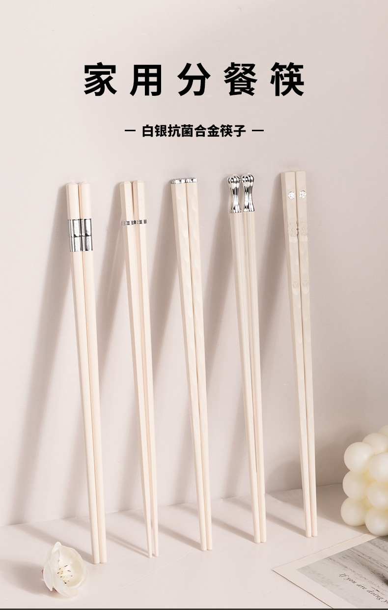 silver points chopsticks [5 pairs] antibacterial and mildewproof non-slip
