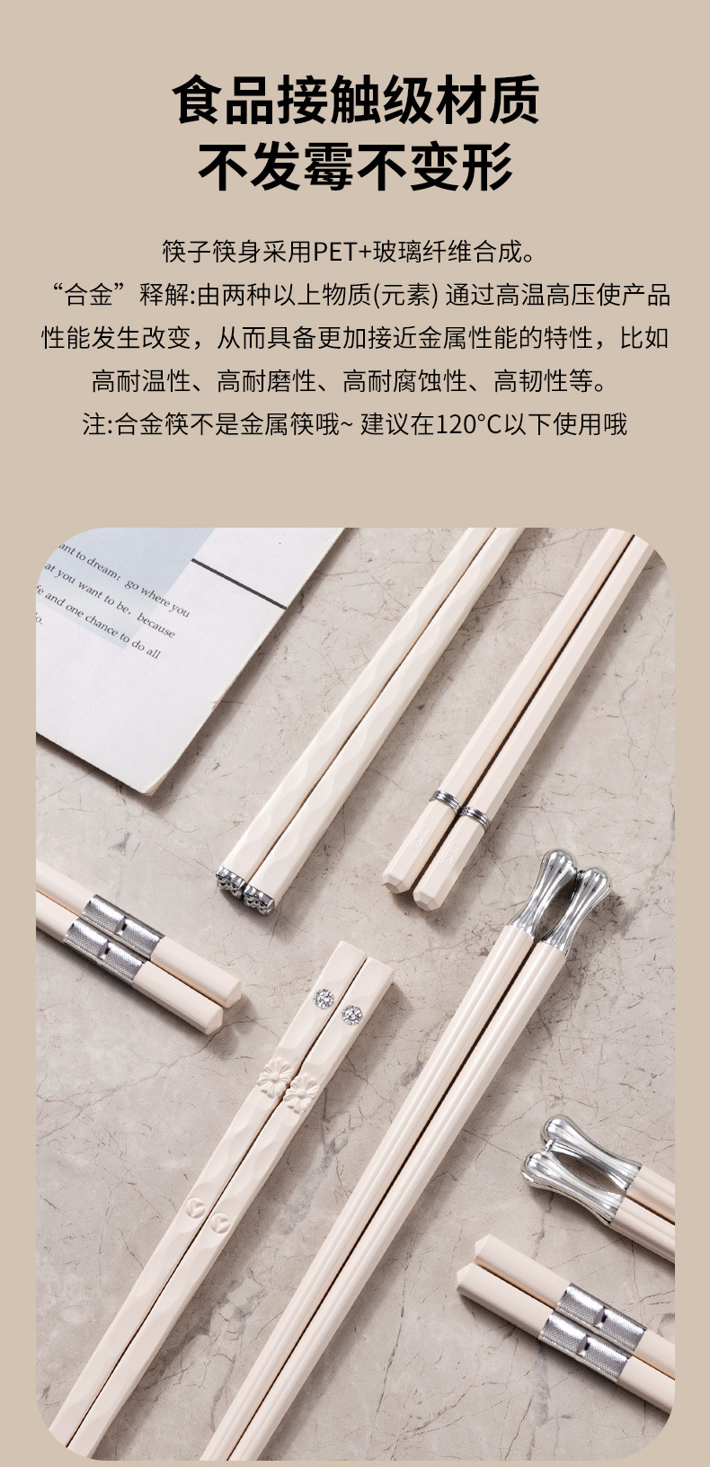 platinum points chopsticks [10 pairs] antibacterial and mildewproof non-slip
