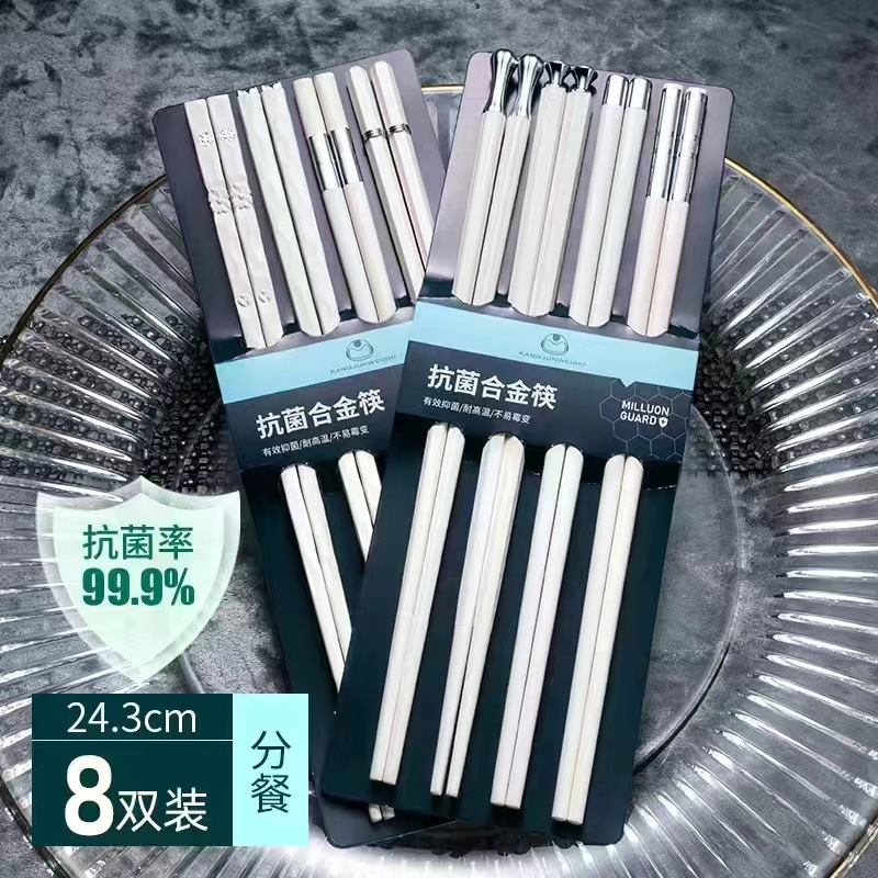 silver points chopsticks [8 pairs] antibacterial and mildewproof non-slip