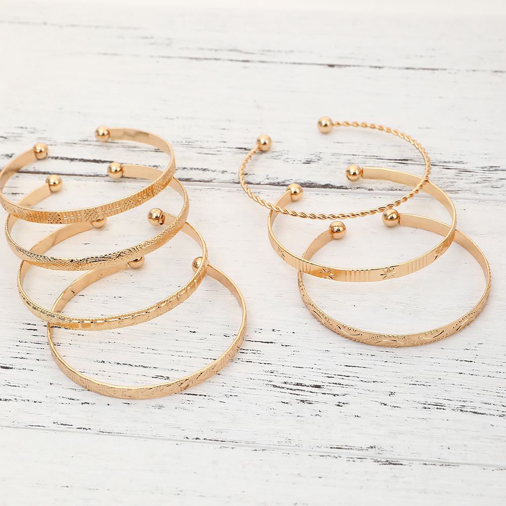 • Product Name:Cross-border European and American tapping pattern arrowhead diamond pattern exaggerated personality hexagram hemp flower opening bracelet set of 7 pieces