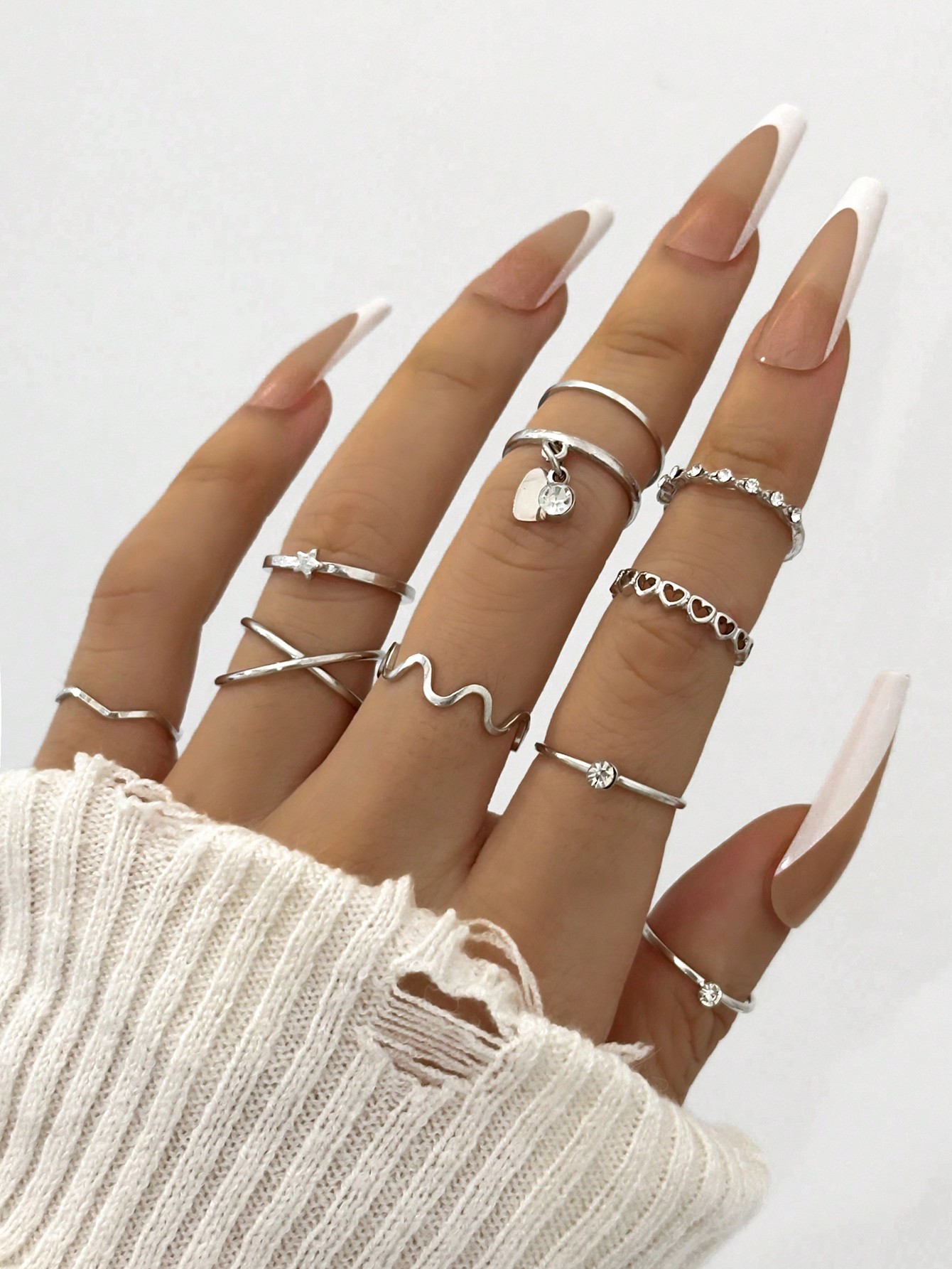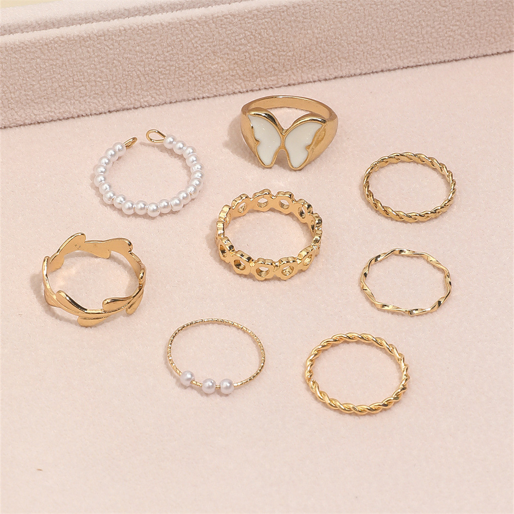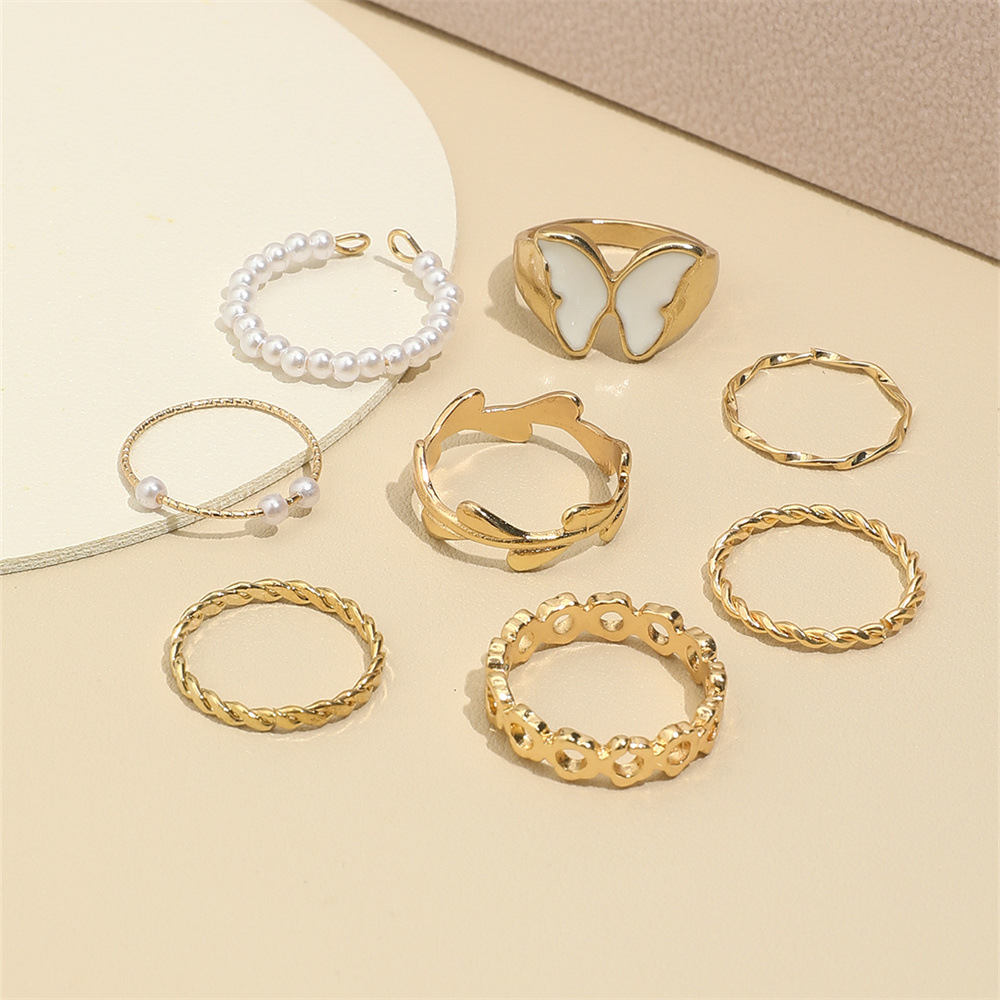 • Product Name: European and American ins style drop oil butterfly ring for women, fashion universal temperament imitation pearl geometric index finger ring set for women