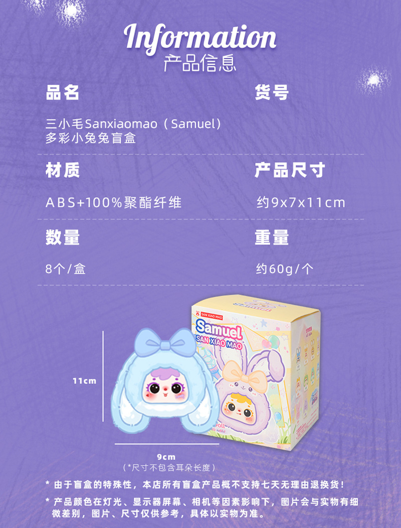 sanxiaomao colorful little bunny random one