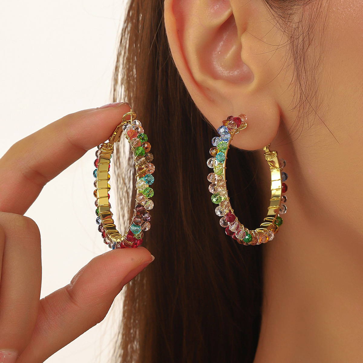 Cross-border European and American color crystal ear rings, hand-wrapped and woven crystal beads, luxury and high-end feeling color crystal earrings.
