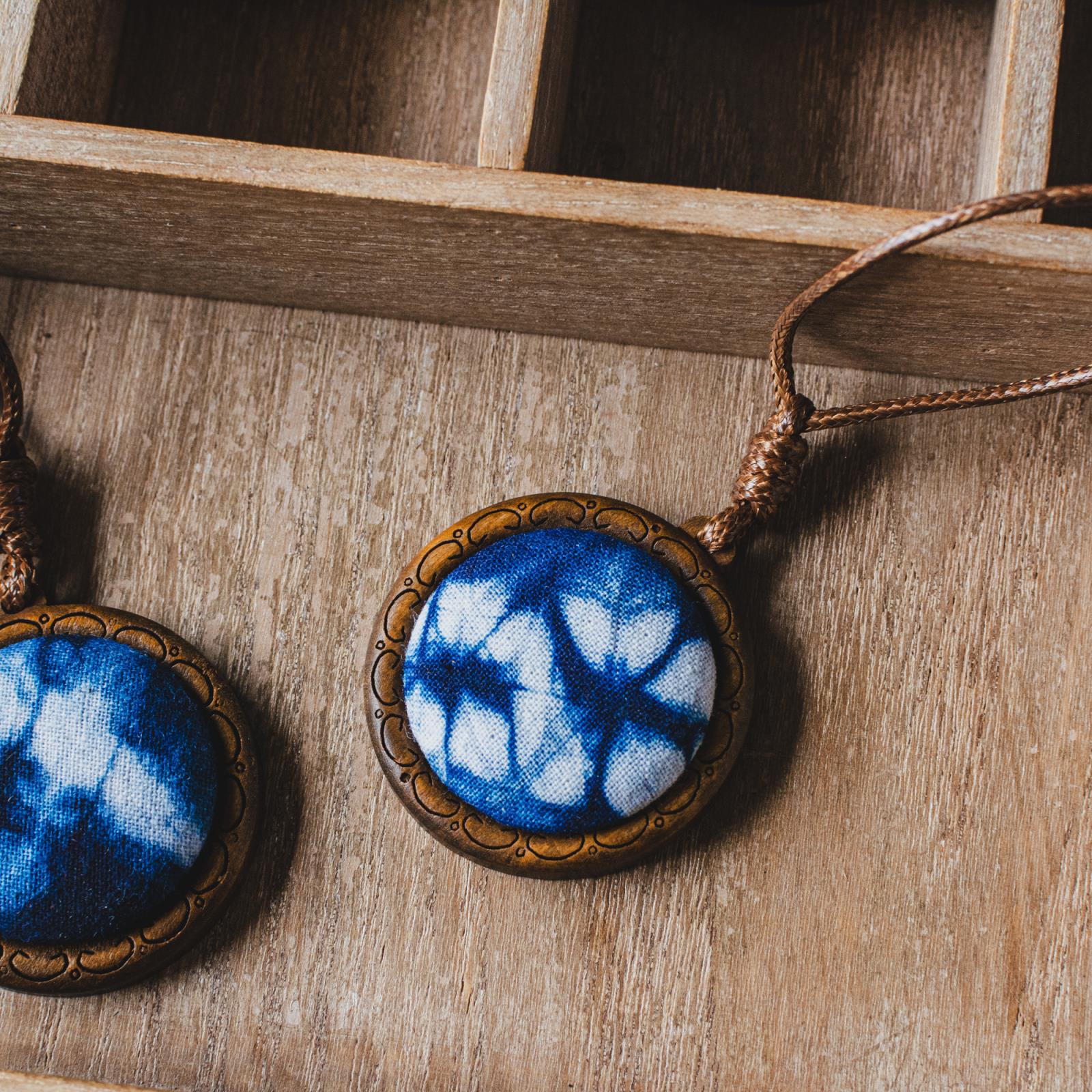 Hand-dyed retro wooden necklace
