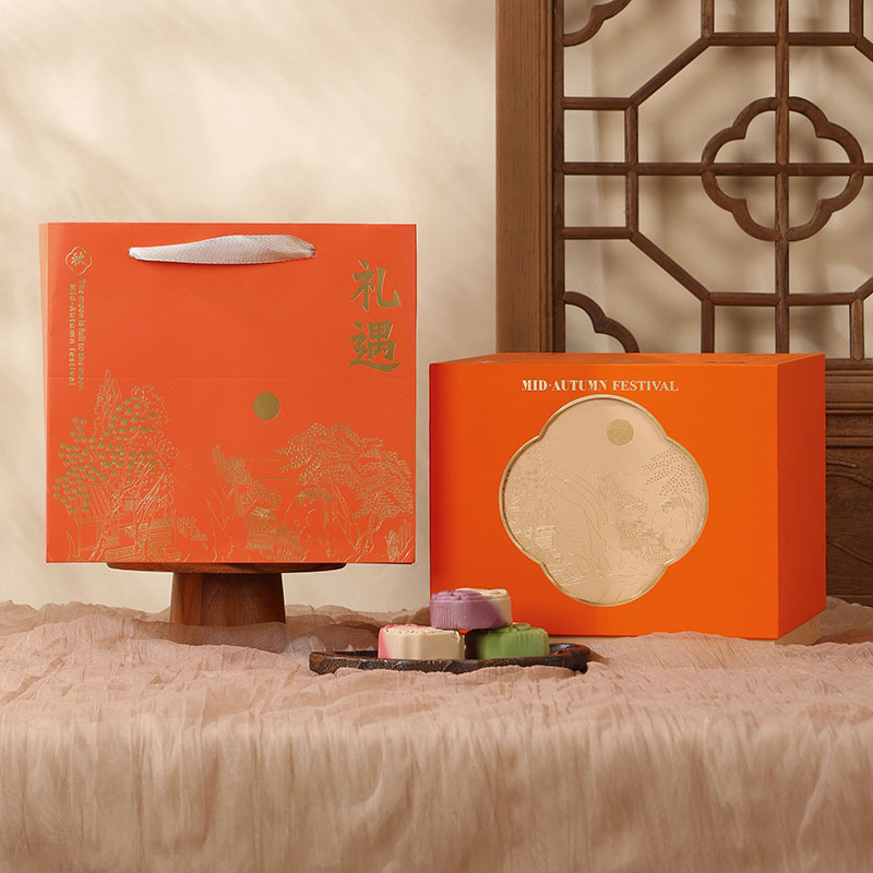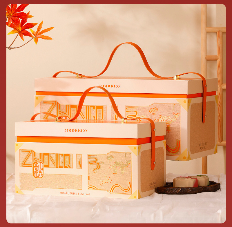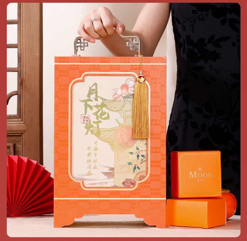 happy mid-autumn festival portable box-orange; 8-piece pack
