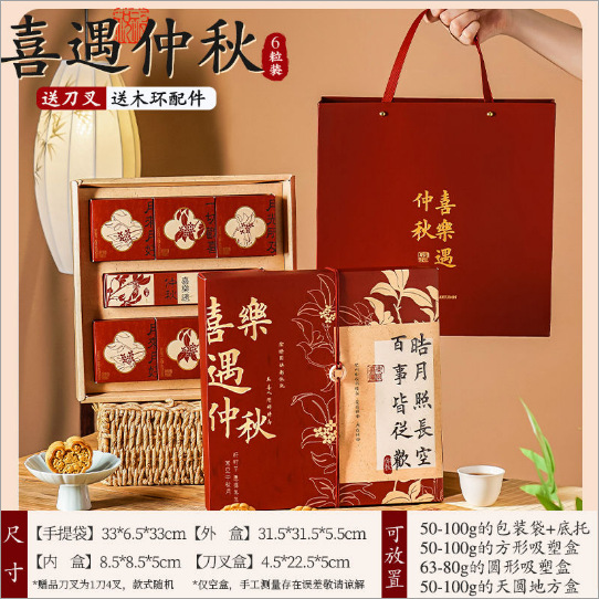 6 tablets 100g [happy occasion midautumn] 1 set of handbag + knife and fork box + knife and fork; customizable logo