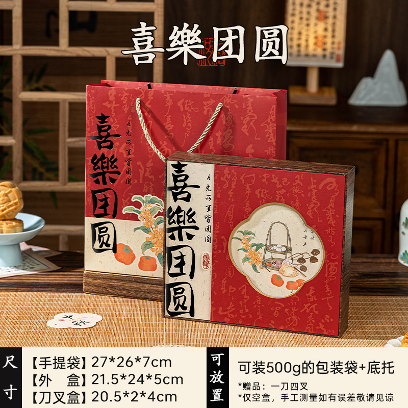 [happy reunion] 500g big mooncake gift box 1 set with knife and fork; customizable logo