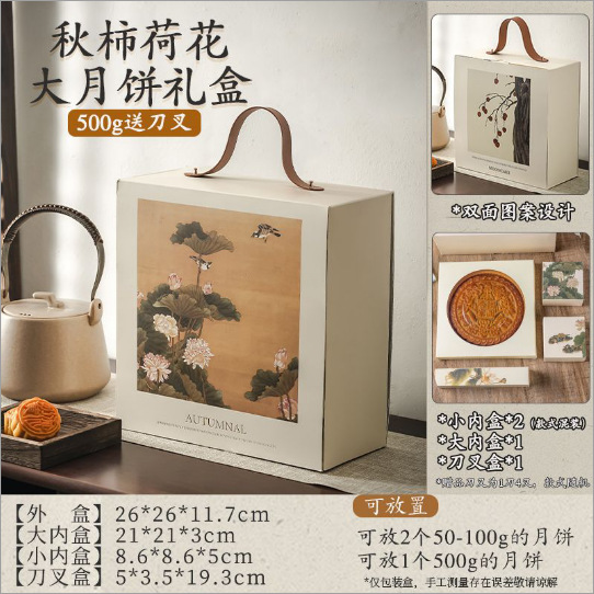 500g double layer [autumn persimmon lotus] 1 set containing knife and fork box + knife and fork; customizable logo