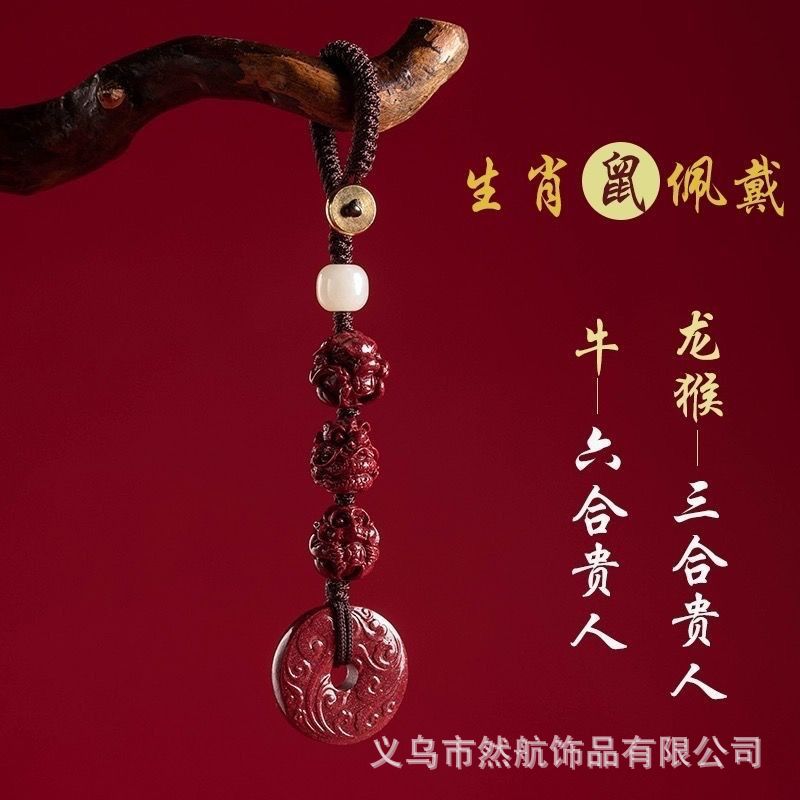 three-in-one zodiac rat with peace buckle flat knot coffee rope