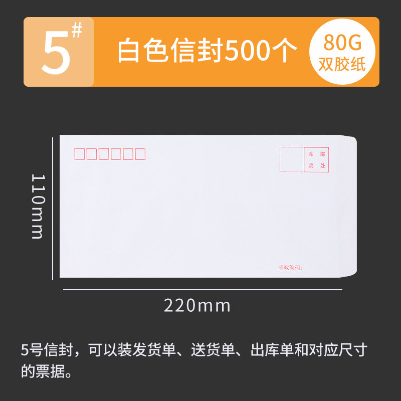 [100 pcs] white envelope no. 5 220 * 110mm/80g double gummed paper-6015