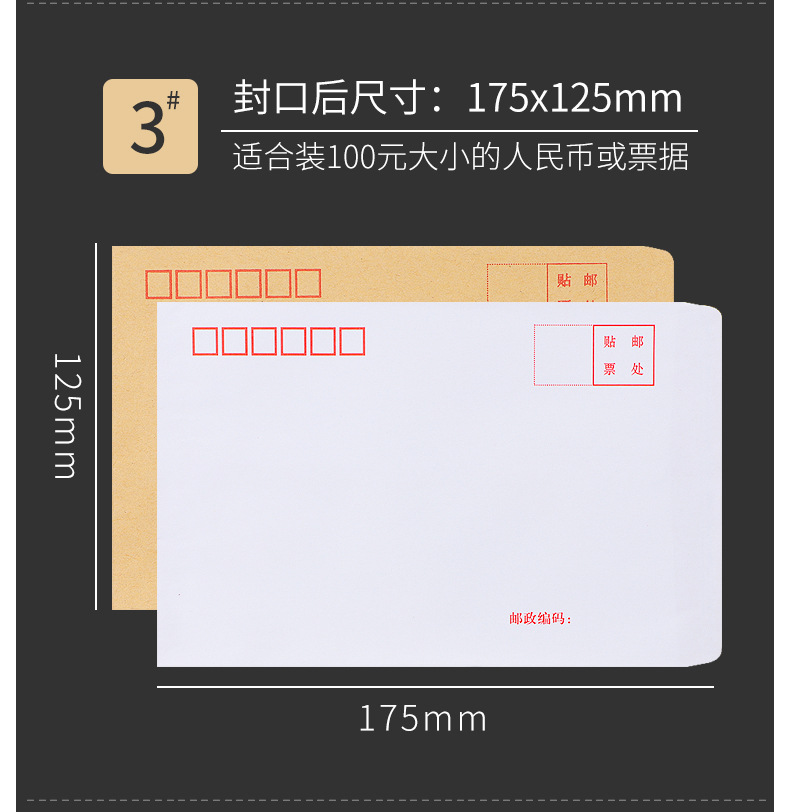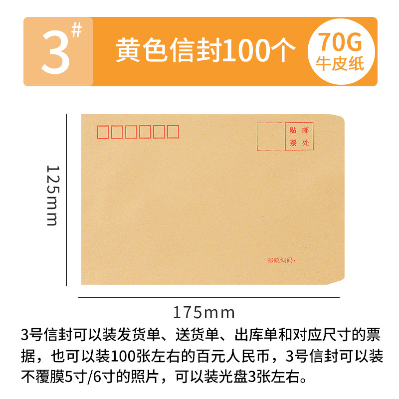[100 pcs] kraft paper envelope no. 3 175 * 120mm/70g mixed pulp-6003