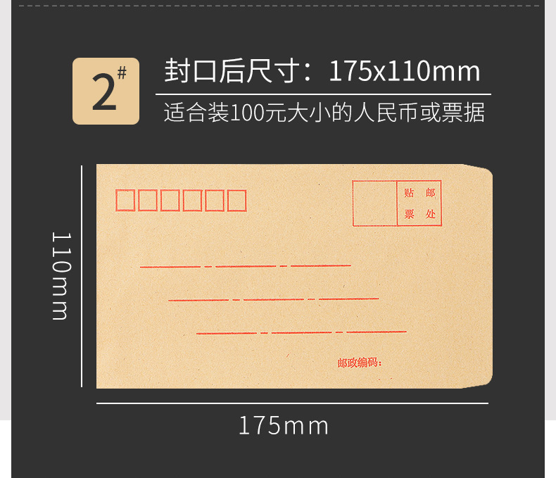 [100 pcs] kraft paper envelope no. 2 175 * 110mm/70g mixed pulp-6002