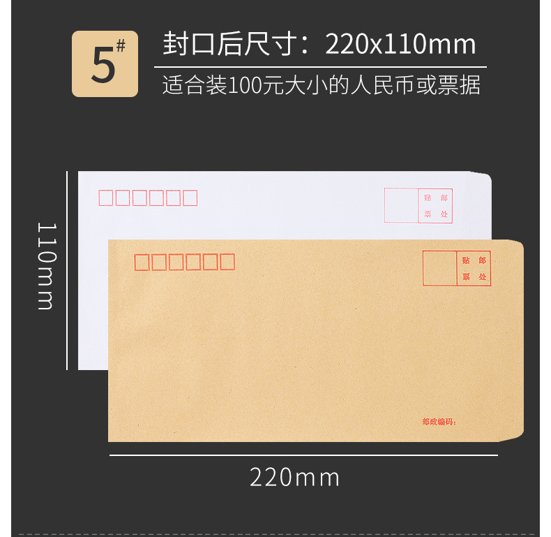 [100 pcs] kraft paper envelope no. 5 220 * 110mm/70g mixed pulp-6005