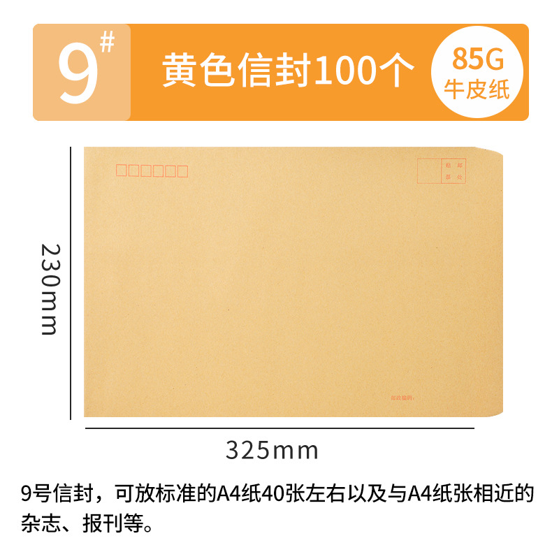 [100 pcs] kraft paper envelope no. 9 325 * 230mm/85g mixed pulp-6009