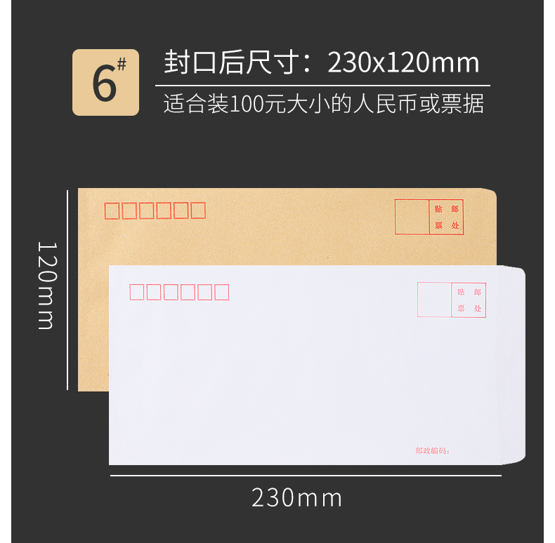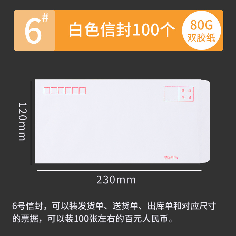 [100 pcs] white envelope no. 6 230 * 120mm/80g double gummed paper-6016