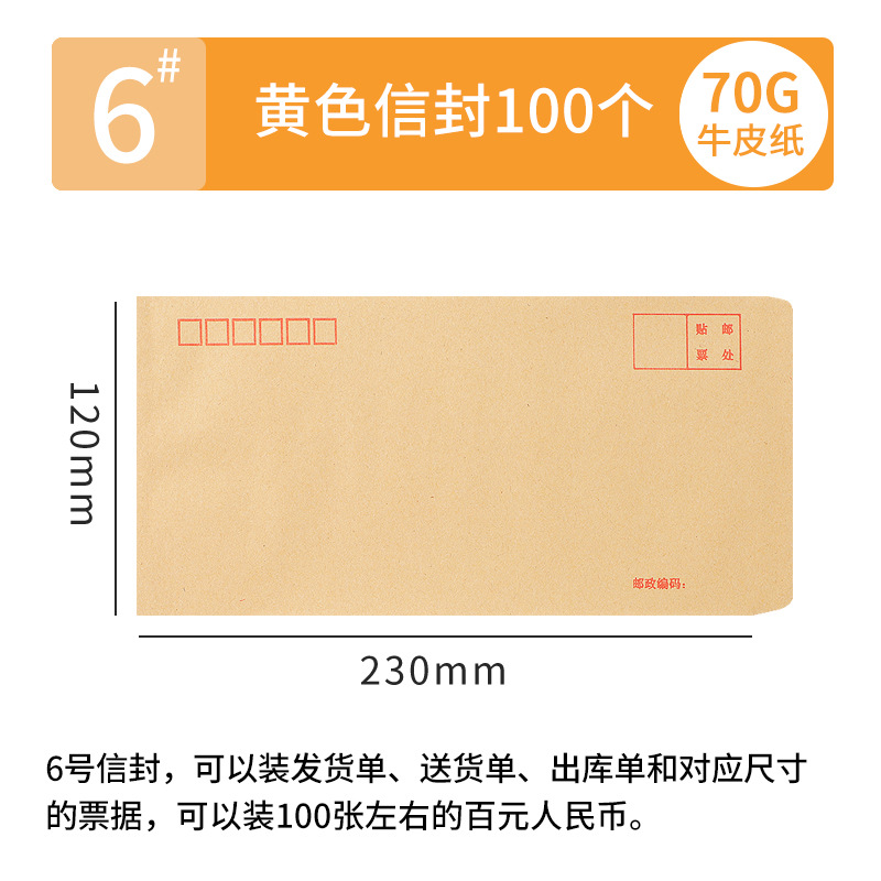 [100 pcs] kraft paper envelope no. 6 230 * 120mm/70g mixed pulp-6006