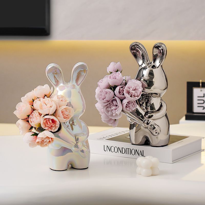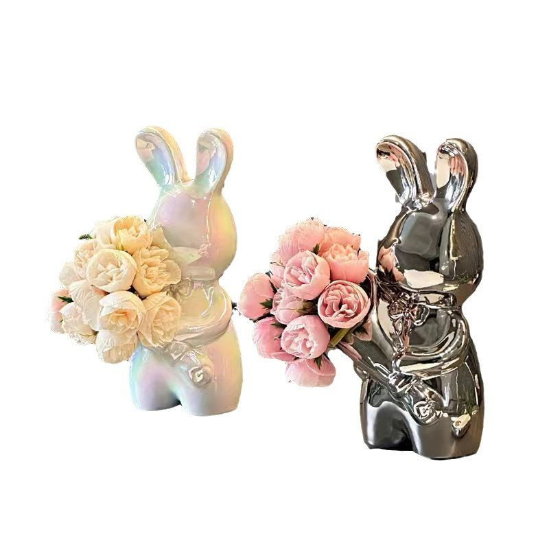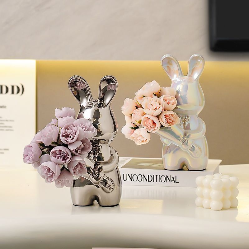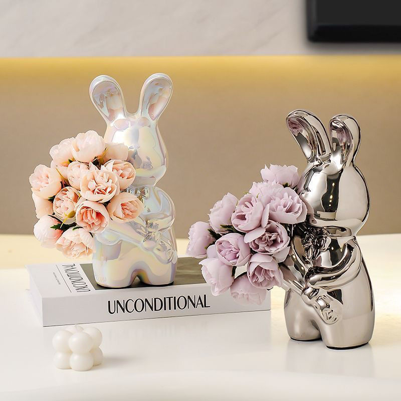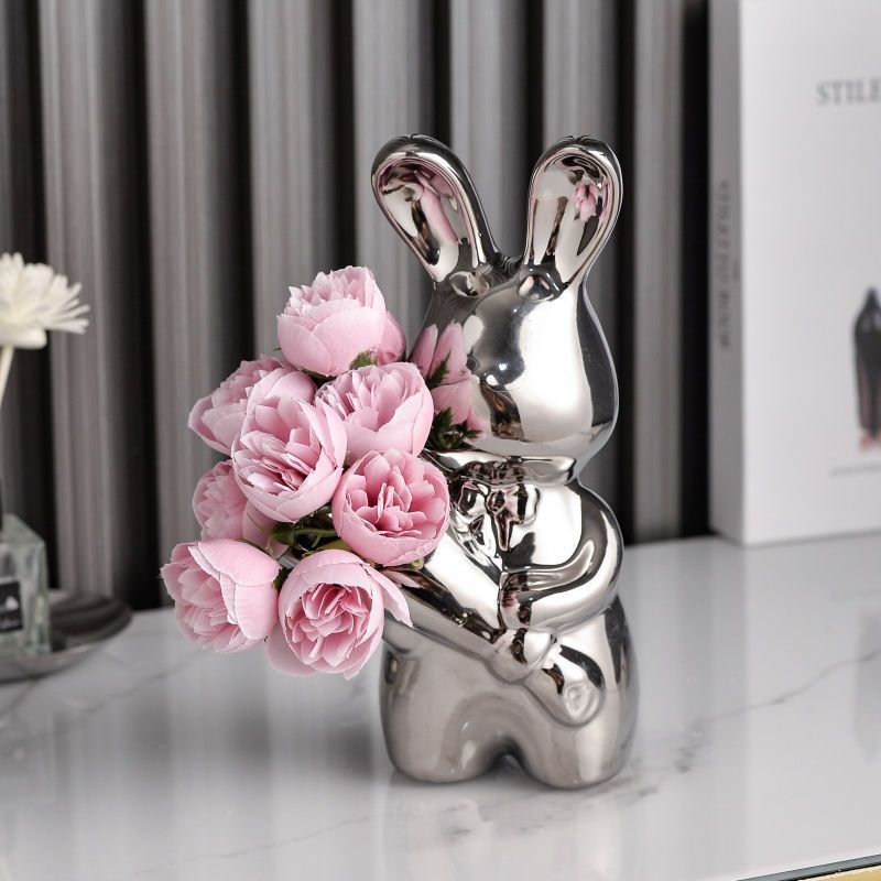 silver bouquet rabbit + rose red flower