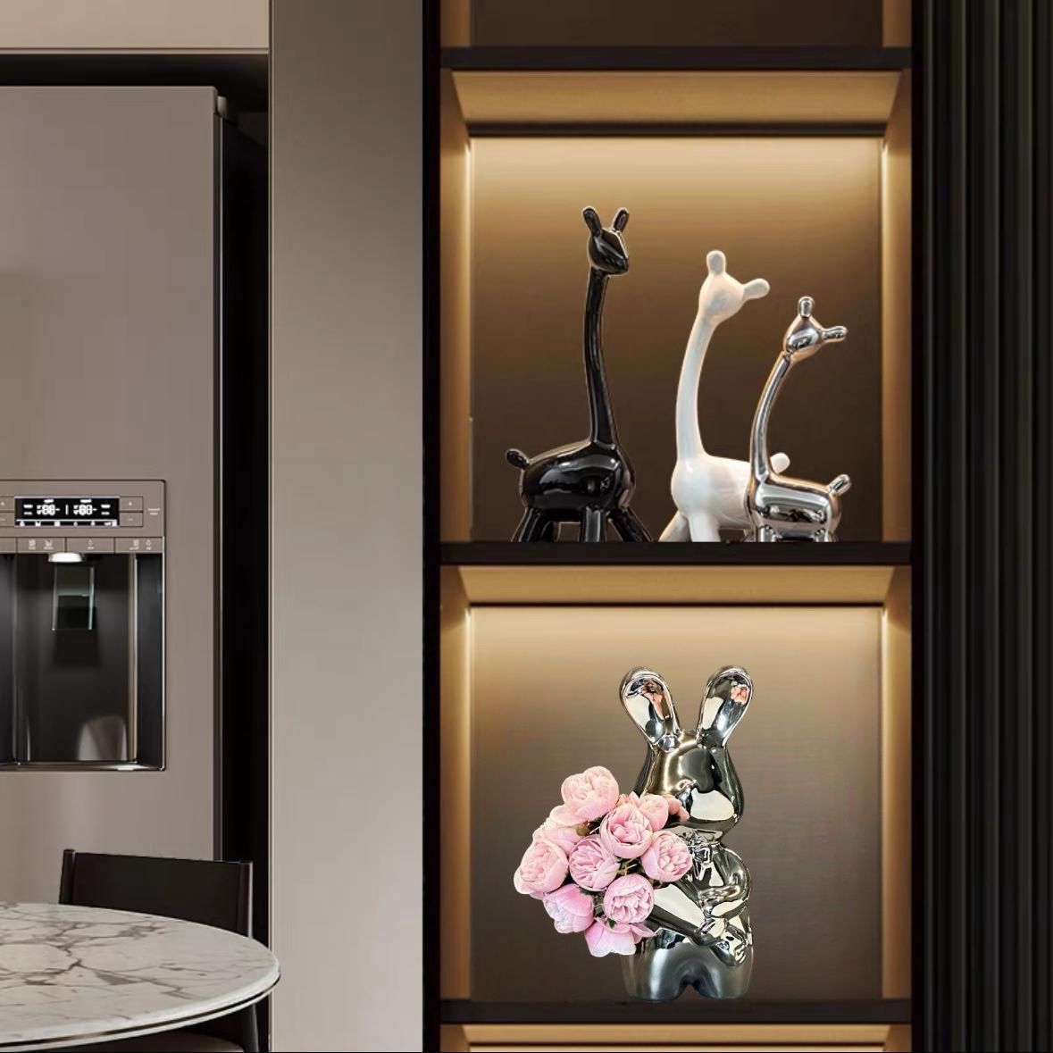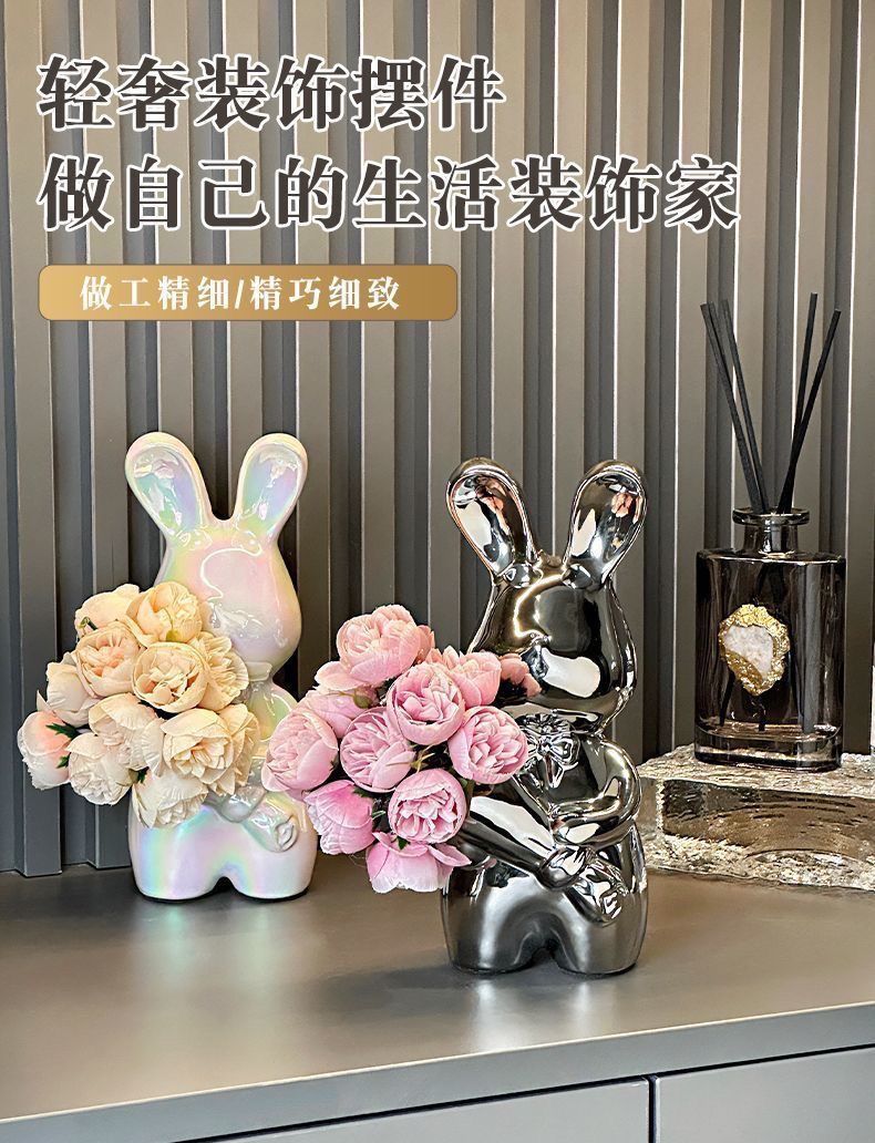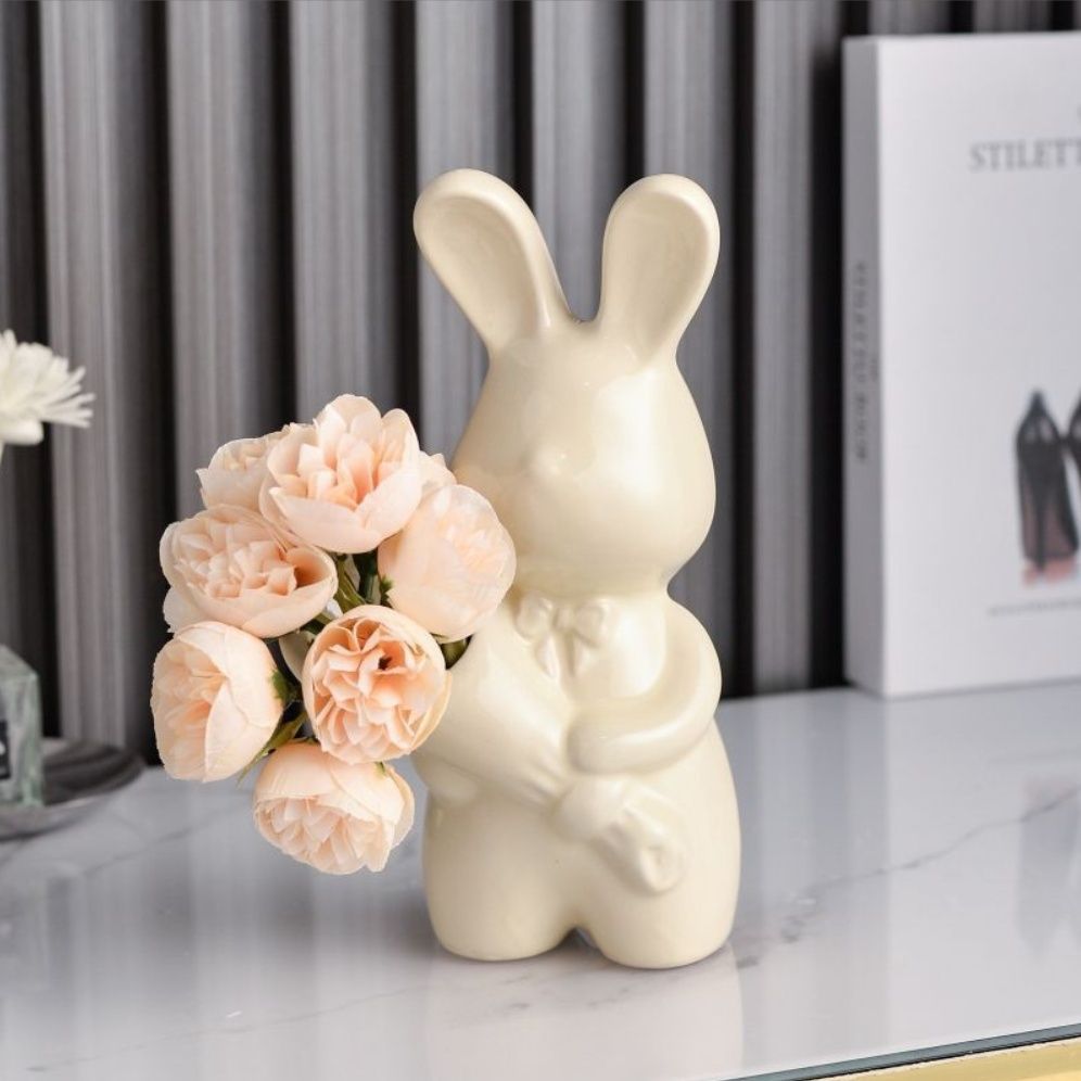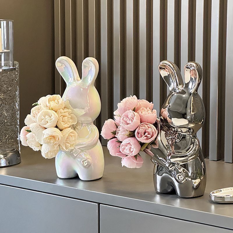 silver bouquet rabbit + rose red flower