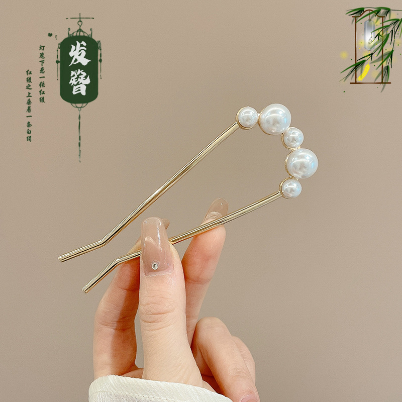 silver five beads pearl hairpin